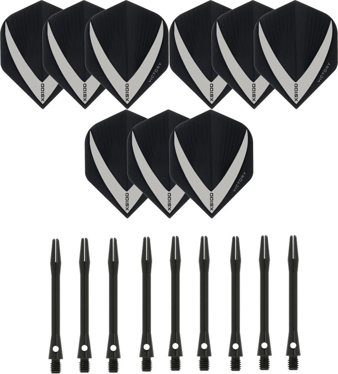 Bij deze mooie darts flights zitten ook nog 3 sets bijpassend zwarte aluminium darts shafts. Zo ben je meteen klaar om een mooie pot te gooien!