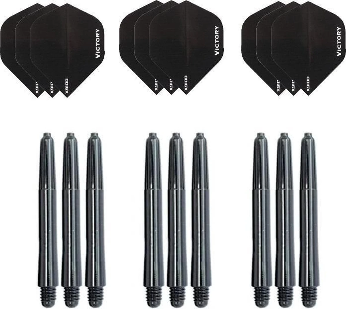 3 Sets (9 Stuks) Super Sterke Zwarte Poly XS100 – Flights – En 3 Sets (9 Stuks) Zwarte – Shafts – Cadeau