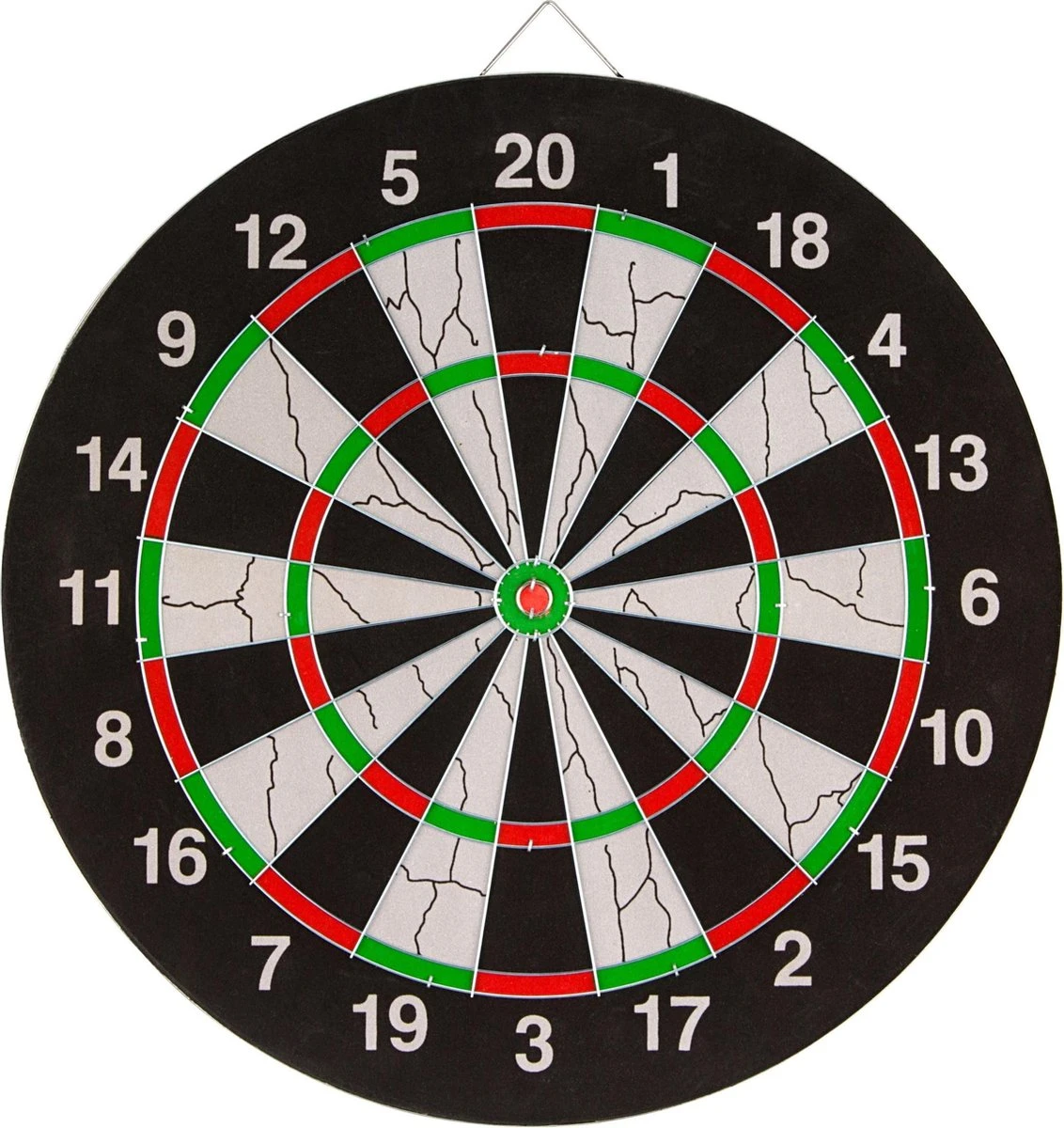 Een complete set om thuis te beginnen met darten. Met dit flock dartbord van Abbey Darts beleef je dubbel zo veel plezier! Het papieren dartbord bevat op de ene zijde een print inclusief stalen draden om het normale 501 dartspel te spelen. En op de andere kant een print van een cirkel dartspel als leuke variatie op het darten. De set bevat ook nog eens 6 brass dartspijlen waardoor je direct alles in huis hebt om je dart skills te oefenen. Uitpakken en gooien maar!