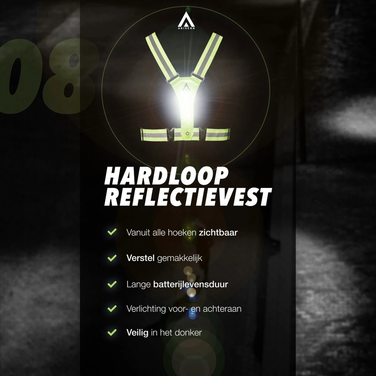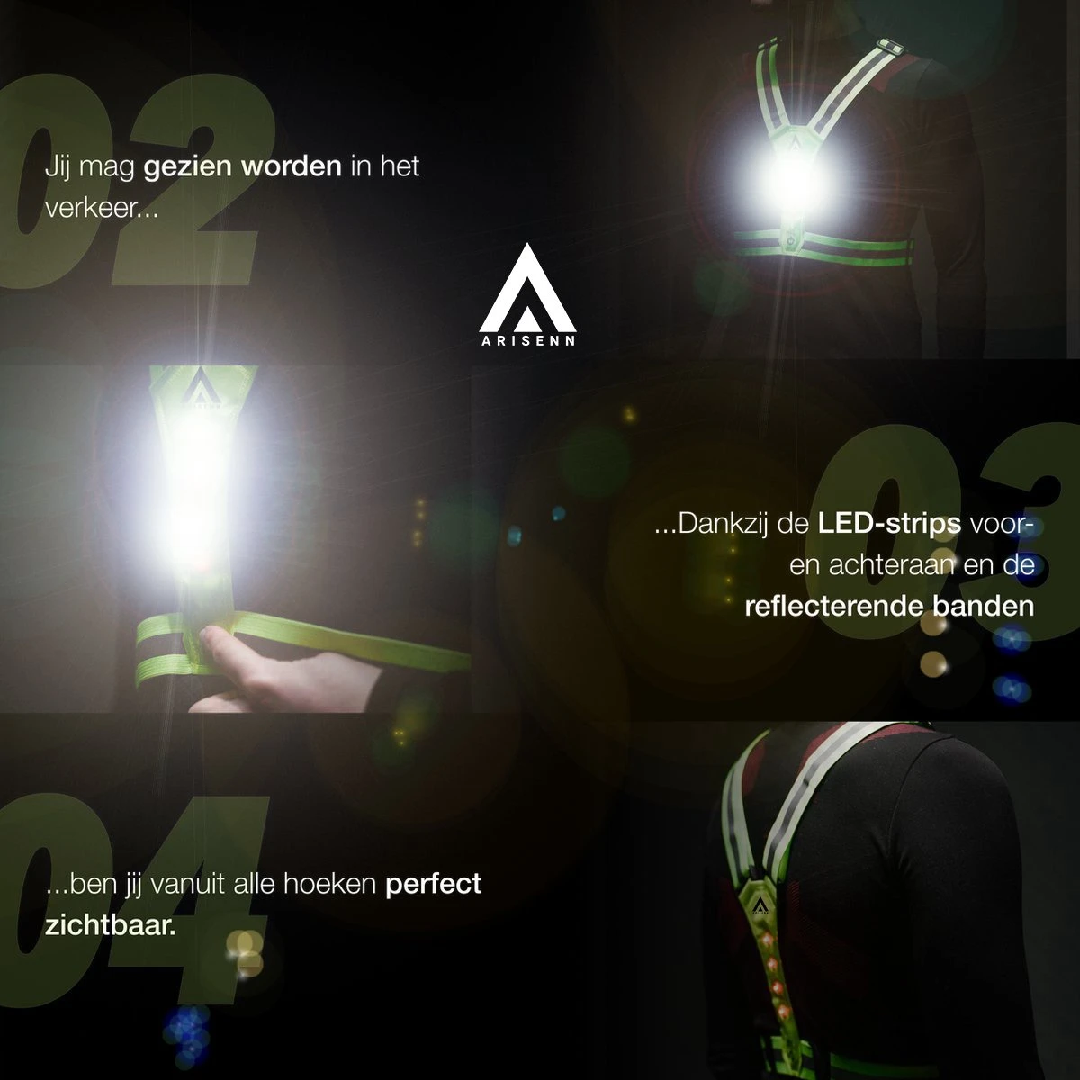 Het hardloop verlichting vest van Arisenn is onderscheidend omdat het kwalitatief getest is en het ontwikkeld is op basis van feedback en gebruikservaring. Het Hardloopvest met verlichting is waterdicht, heeft felle lampen en zit comfortabel.