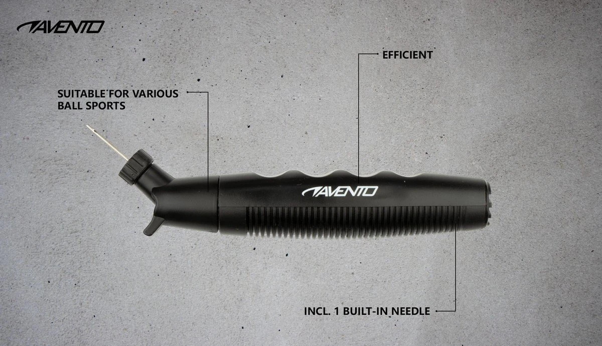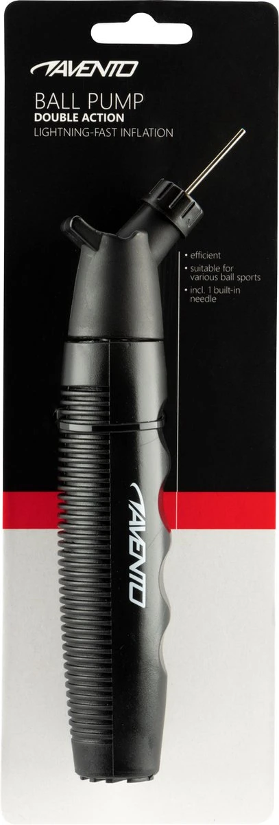 Deze Avento double-action ballenpomp is praktisch, compact en licht. De handzame balpomp pompt bij op- en neerwaartse bewegingen, waardoor ballen sneller en gemakkelijker opgepompt worden. De pomp heeft een sterke, stalen naald, waarmee diverse ballen zoals voetballen, basketballen en volleyballen kunnen worden opgepompt.