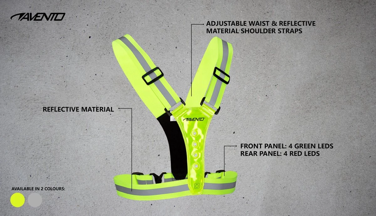 Dit LED Veiligheidsvest van Avento maakt je perfect zichtbaar in het donker voor andere weggebruikers. Ideaal dus als je gaat wandelen, fietsen of hardlopen in de avonduren of vroege morgen. Dankzij de gemakkelijk verstelbare elastische banden is het Avento LED Veiligheidsvest eenvoudig aan te trekken over een jas of sportkleding. Het hesje is extra comfortabel door de neopreen voering bij de panelen. De elastische banden zijn voorzien van 3M Scotchlite(TM) reflectie, hierdoor val je extra goed op.