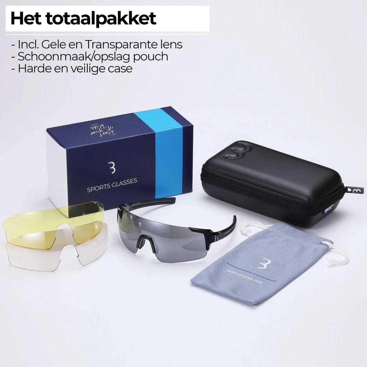 De BBB Cycling FullView sportbril BSG-63 heeft een prachtig grenzeloos ontwerp. De bril geeft een open en lichtgewicht gevoel dankzij het frameloze ontwerp. De bril wordt geleverd met 3 paar lenzen zodat je op elke weeromstandigheid voorbereid bent.