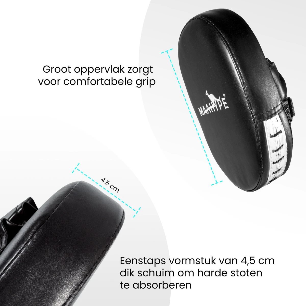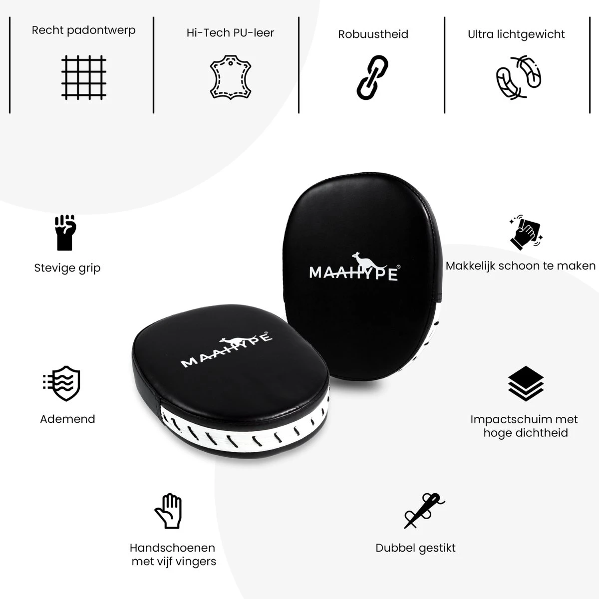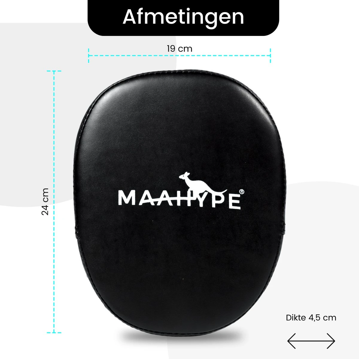 Zoekwoorden: Maahype Boks pads – Stootkussen – Hand pads – Pads Boksen – Heren & Dames – Onesize – Unisex