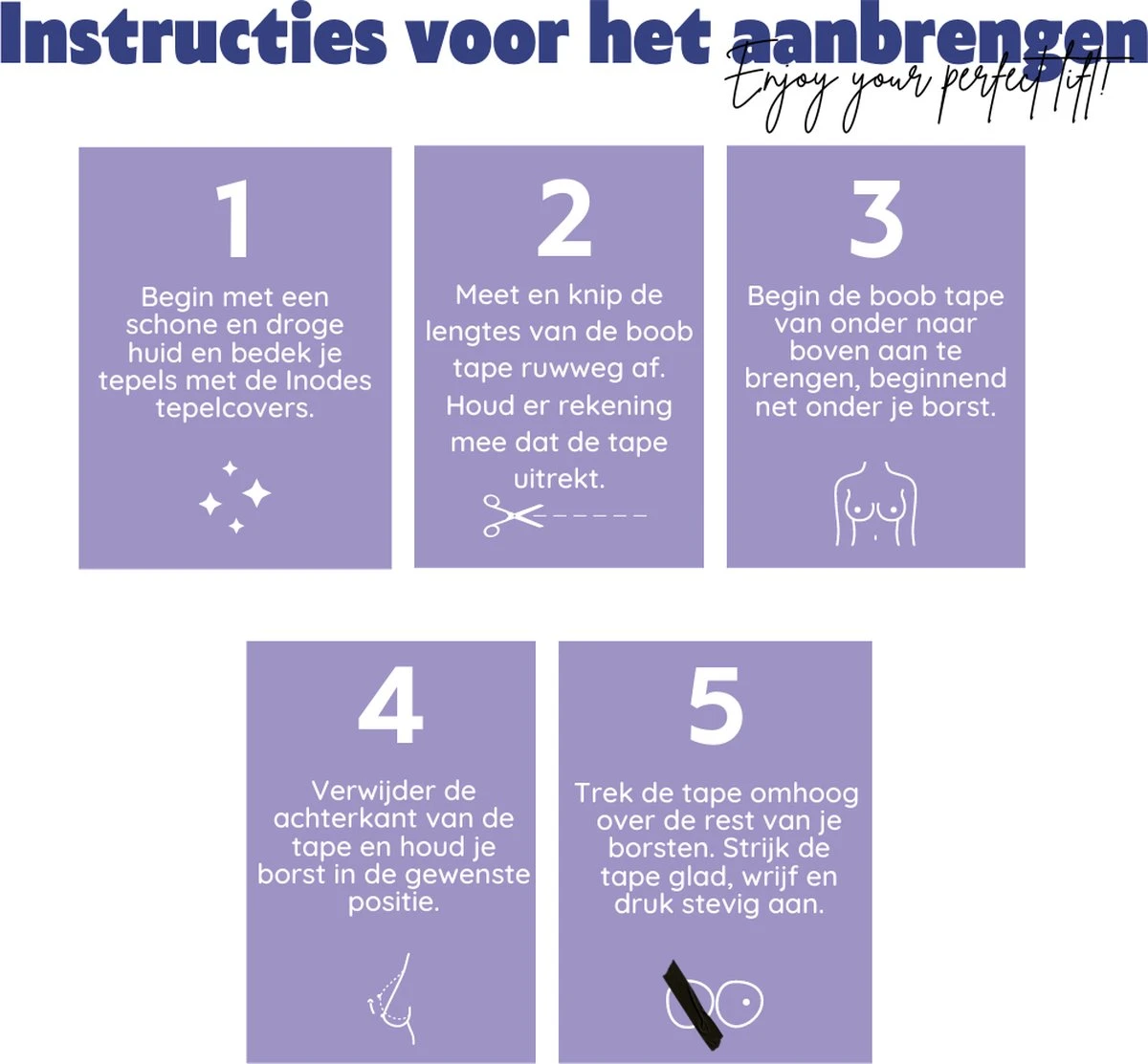 In dit soort situaties is de boobtape de perfecte oplossing. Met behulp van deze tape kunnen de borsten op de gewenste manier gelift worden wat zorgt voor een fabulous look. De tape kan op verschillende manieren worden aangebracht (zoals te zien op de achterzijde van het doosje) en in elke vorm worden bijgeknipt, zodat deze bij elke soort outfit aansluit.