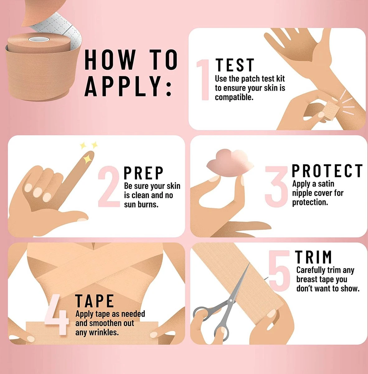 Onze boob tapes voor vrouwen bieden een sterke, waterdichte tape die de hele dag mee kan! Onze boob tape voor borstlifting is flexibel, dus je moet je geen zorgen maken dat het loskomt. Vermijd ongemakkelijke bandjes en laat je lichaam doen wat je wilt, terwijl je kleding en borsten op hun plaats worden gehouden!