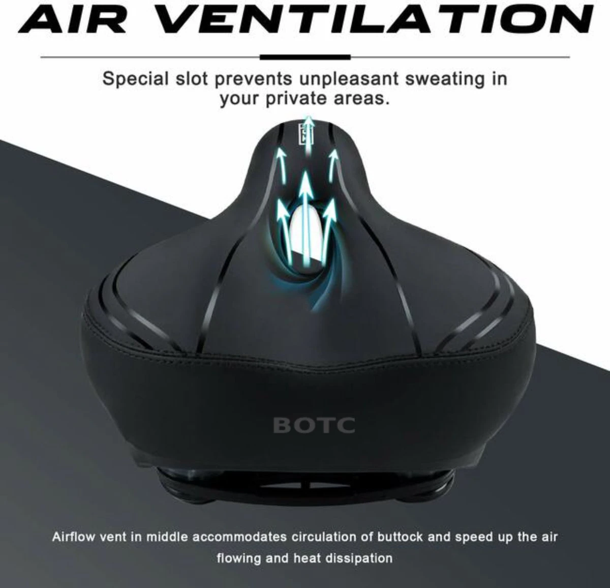 CENTRALE LUCHTVENTILATIE – Hol ontwerp in het midden zorgt voor luchtcirculatie van de billen en versnelt de luchtstroom en warmteafvoer. Dit zachte fietszitje voor mannen en vrouwen voorkomt onaangenaam zweten in uw privézones, zodat u kunt rijden zonder vocht en ongemak!