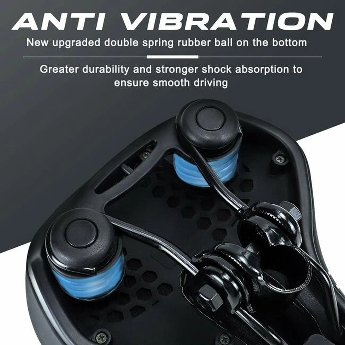 STRONG SHOCK ABSORPTION – Nieuwe opgewaardeerde dubbele veer rubberen ballen op de bodem zorgen voor een gezondere & betere rijervaring. Dit nieuwe ontwerp kan de schok beter absorberen, de pijn effectief verminderen en uw achterwerk beter beschermen. Onze oversized fietszadelvervanger laat u rijden zonder schudden en pijn!