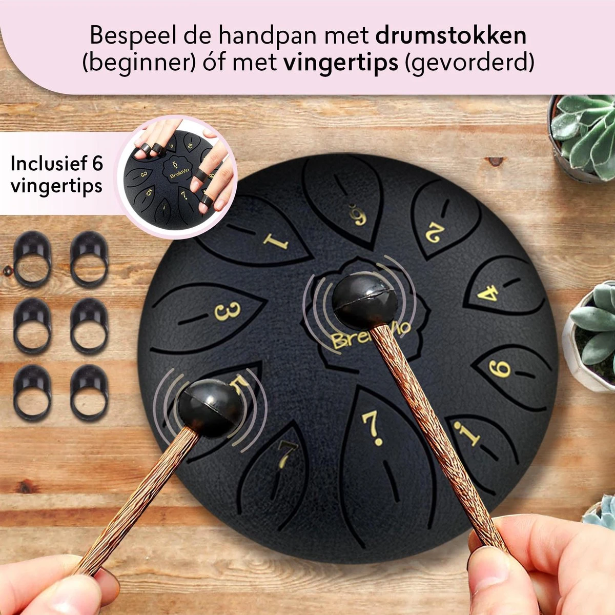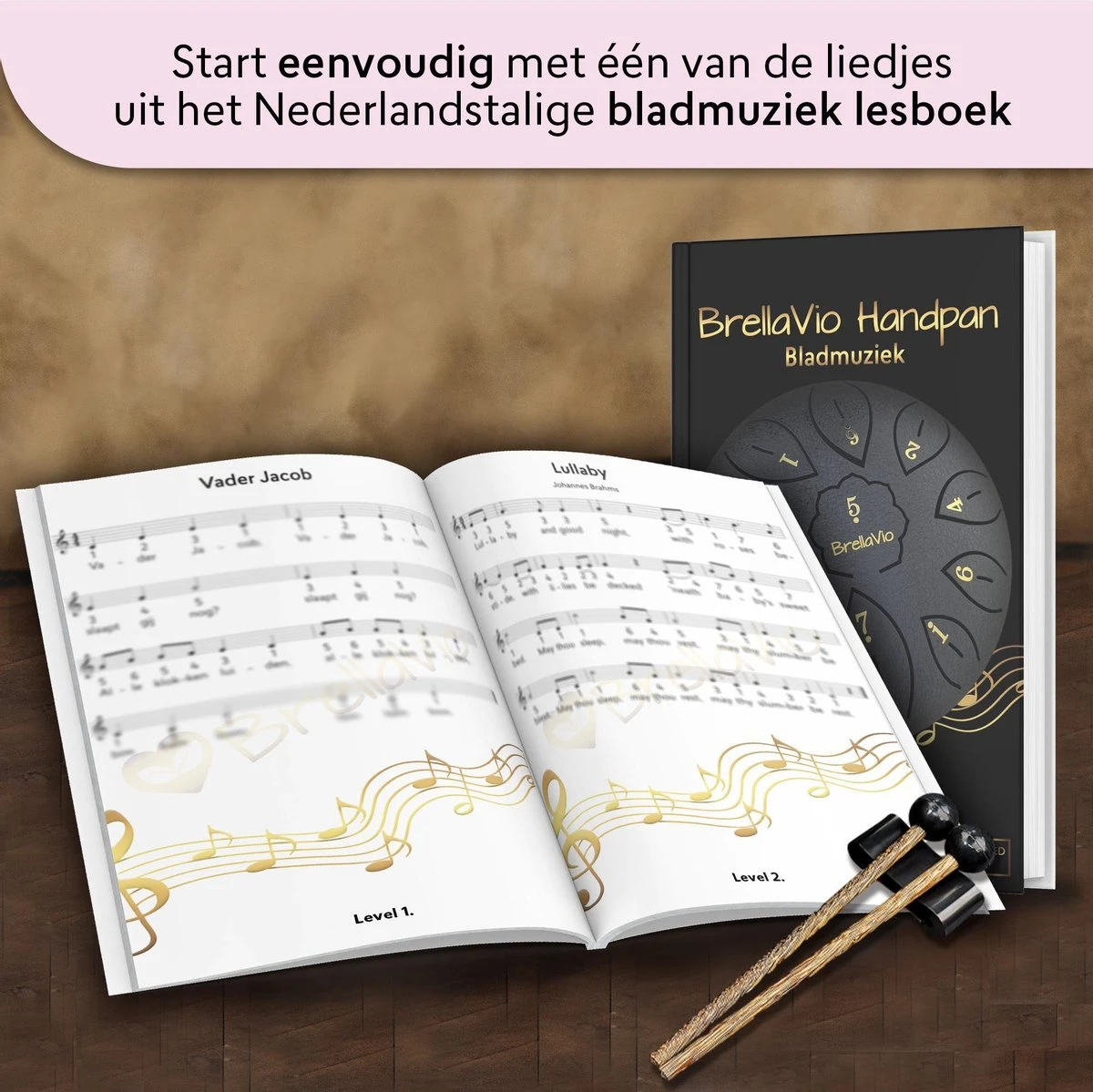 Mits je de juiste begeleiding hebt, is het bespelen van de handpan een genot! Daarom krijg je bij deze tongue drum een intuïtief bladmuziek lesboek. Dit lesboek is in samenwerking met een specialist op het gebied van slagwerk ontwikkeld. Hierdoor leer jij het instrument in korte tijd beheersen en kom je tot volledige ontspanning.