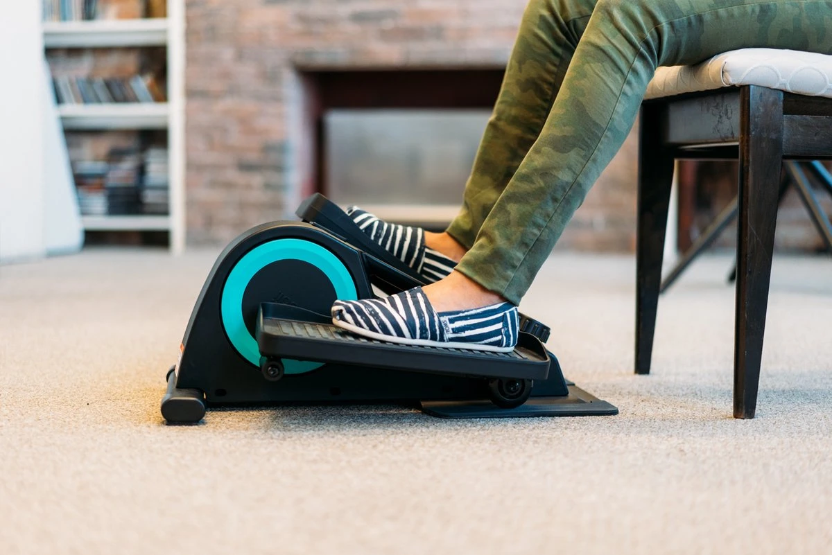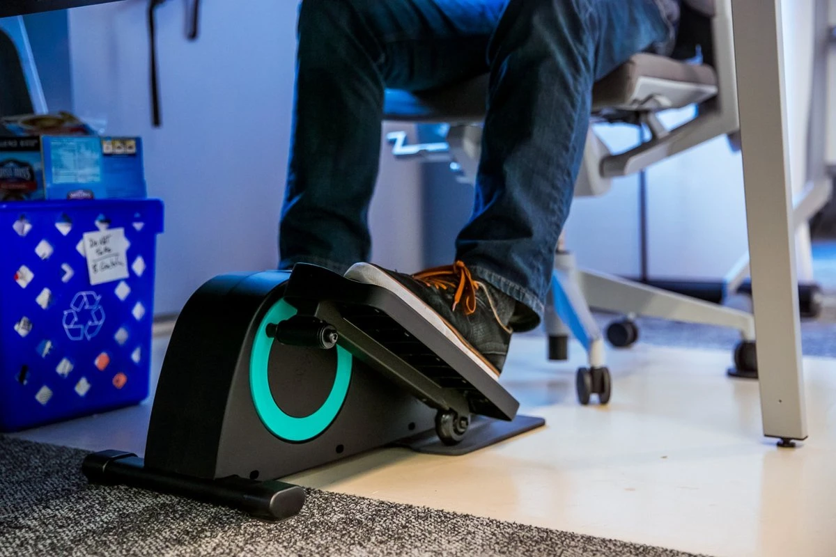 De beentrainer is speciaal ontworpen om te gebruiken tijdens het zitten. Dankzij het slanke en compacte ontwerp past de trainer voor je favoriete stoel of bank. Ook blijven je knieën lager dan bij een compacte fietstrainer, waardoor is het apparaat zeer geschikt om onder bijna elk tafel of bureau gebruikt te worden. Bovendien is de beentrainer compact, draagbaar en het frame heeft een ingebouwde handgreep. Hierdoor kun je de trainer eenvoudig overal mee naar toe nemen. De beentrainer bevat een set wielstoppers om te voorkomen dat je bureaustoel gaat rollen terwijl je trapt.