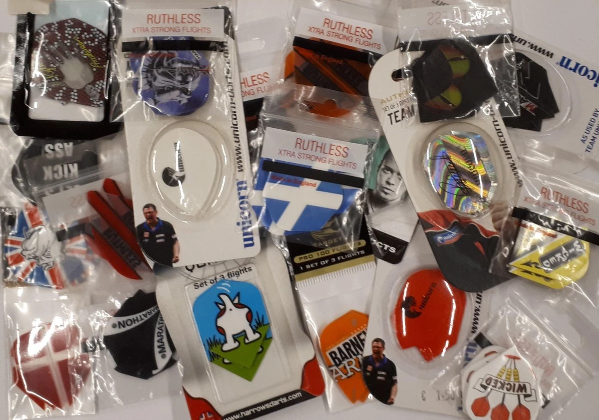 Diverse soorten en vormen dartflights.
