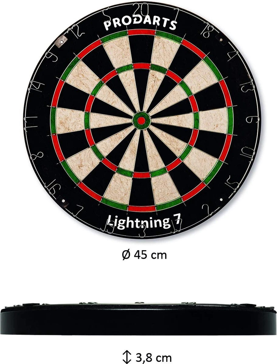 Dartbord, inclusief 4 pijlen in 2 verschillende kleuren en ophanghaak.