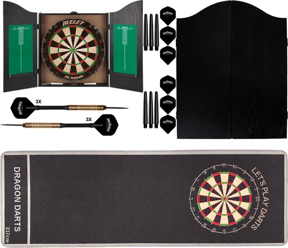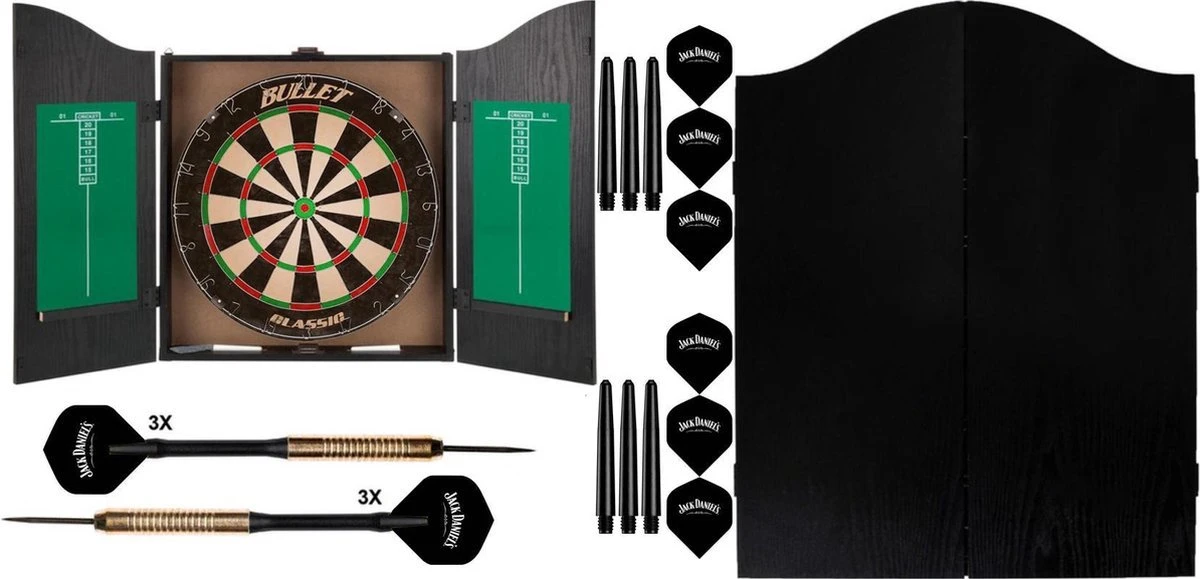 ⭐ Complete Jack Daniels dartset, kabinet, dartbord, dartpijlen ⭐
