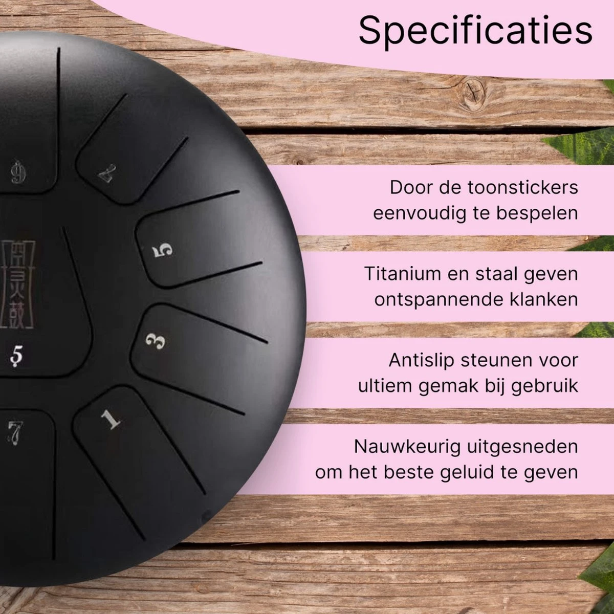 Het bespelen van de handpan is erg makkelijk te bespelen! Bij deze tongue drum ontvang je een intuïtief bladmuziek lesboek. Dit lesboek is in samenwerking met een specialist op het gebied van slagwerk ontwikkeld. Hierdoor leer jij het instrument in korte tijd beheersen en kom je tot volledige ontspanning.