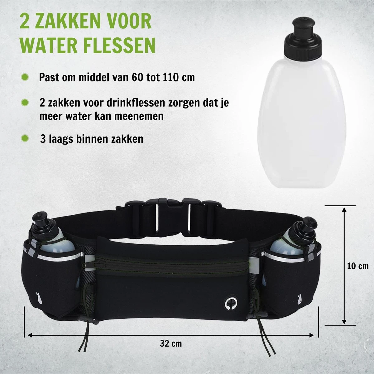 β Dankzij de twee meegeleverde waterflessen blijf je goed gehydrateerd