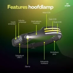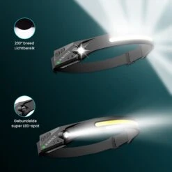 LED Hoofdlamp 350 Lumen Oplaadbaar – Breedstraler 230° – BewegingsSensor – Zwart – King Mungo