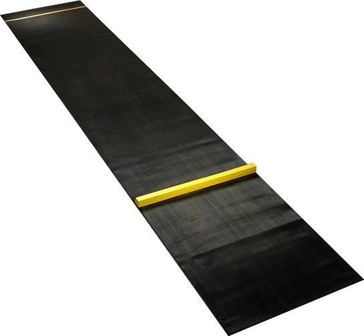 Deze rubberen mat is uitgevoerd met een “Oche” (afm. 3.5 x 3.5 x 59 cm) die bedoelt is als achterlijn (toe-line) zodat vanuit de juiste afstand gegooid kan worden. Afmetingen totale mat 330 x 60cm. De dartmat dient op maat gesneden te worden. De officiële werpafstand is 2.37m, gemeten van de voorkant dartbord tot achterkant gooilijn. De rubberen dartmat is ter bescherming van je vloer door afketsende darts.