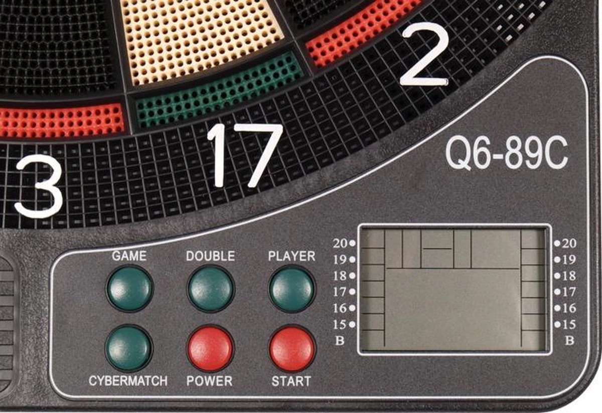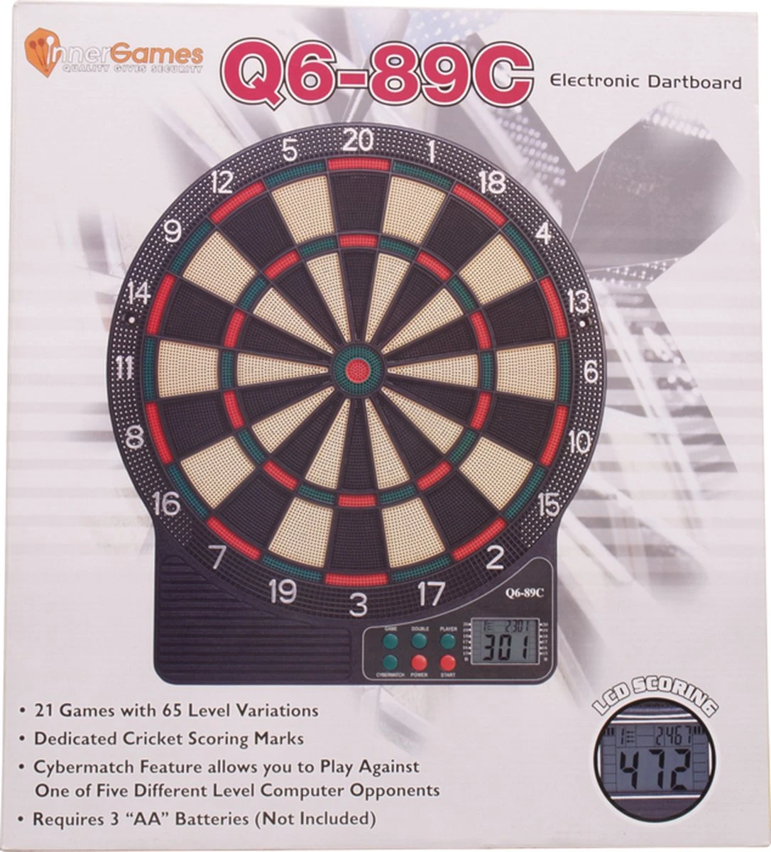 Electronisch softtip dartboard Economy is een leuk en veilig alternatief voor een standaard dartbord. Elektronisch darten is een veilig alternatief: de darts hebben een stompe plastic punt in plaats van een stalen punt. Daarbij kun je lekker lui darten, want je hoeft de scoretelling niet bij te houden, dit gaat automatisch. Bovendien kun je met elektronisch darten veel verschillende spelvariaties spelen, op verschillende spelniveaus. De economy heeft 21 verschillende spelen en 65 niveaus. Je kan tot 8 spelers laten meespelen! Inclusief geluids- en lichteffecten en een gecomputeriseerde speaker (one hondred and eieieieeightyyyyyyy!!).