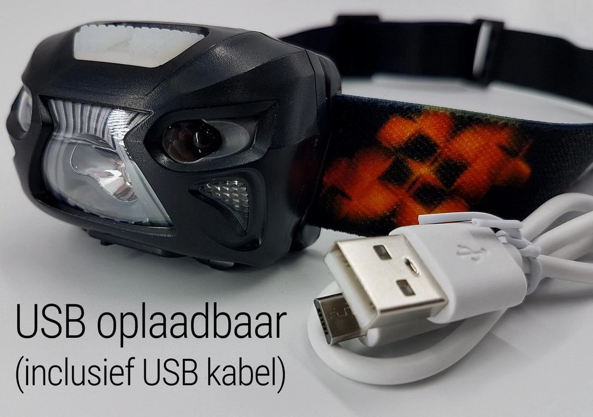 In de led-hoofdlamp zit een oplaadbare batterij, die gemakkelijk op te laden is met de bijgeleverde USB kabel. Je kunt hem opladen met je laptop (usb poort) of telefoon adapter (power adapter niet meegeleverd). Doordat de hoofdlamp led oplaadbaar is hoef je niet steeds nieuwe batterijen te kopen (goed voor het milieu en voor je portemonnee). De oplaadbare batterij is lichtgewicht dus heel fijn in dit usb hoofdlampje.