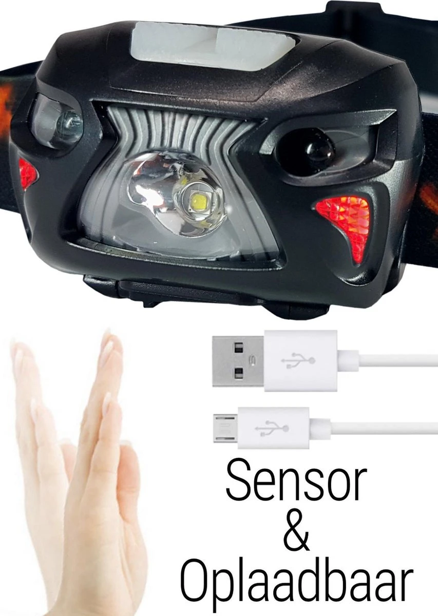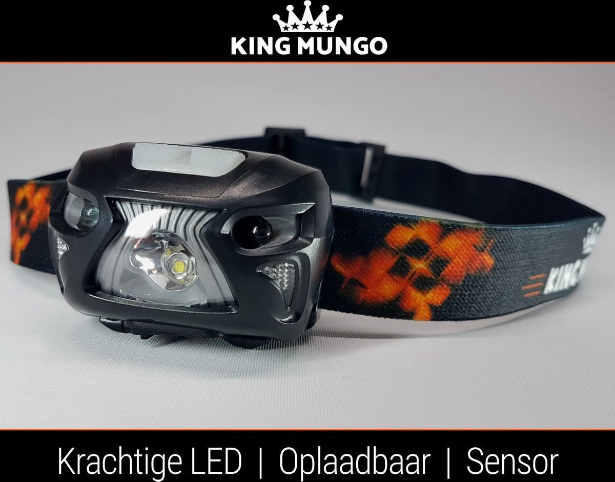 Hoofdlamp LED USB Oplaadbaar Waterdicht met Bewegingssensor, geeft super veel licht en gaat heel lang mee (met oplaadbare batterij). Ultraheldere krachtige King Mungo KMHL014 led hoofdlamp, lichtgewicht en geschikt voor iedere activiteit. Met wit en rood licht. Bevat de nieuwste krachtige XP-E / XP-G2 CREE leds die veel licht geven.