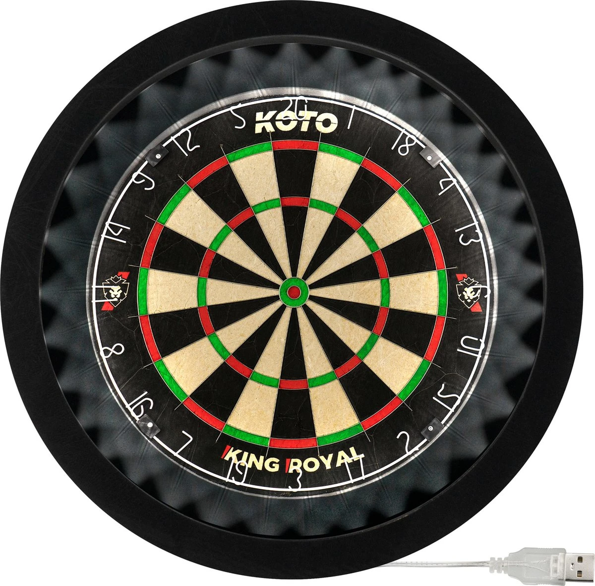 Verlichting: Deze KOTO dartbord LED verlichting beschikt over 60 LED lampen en heeft een 3 meter lange USB-kabel.