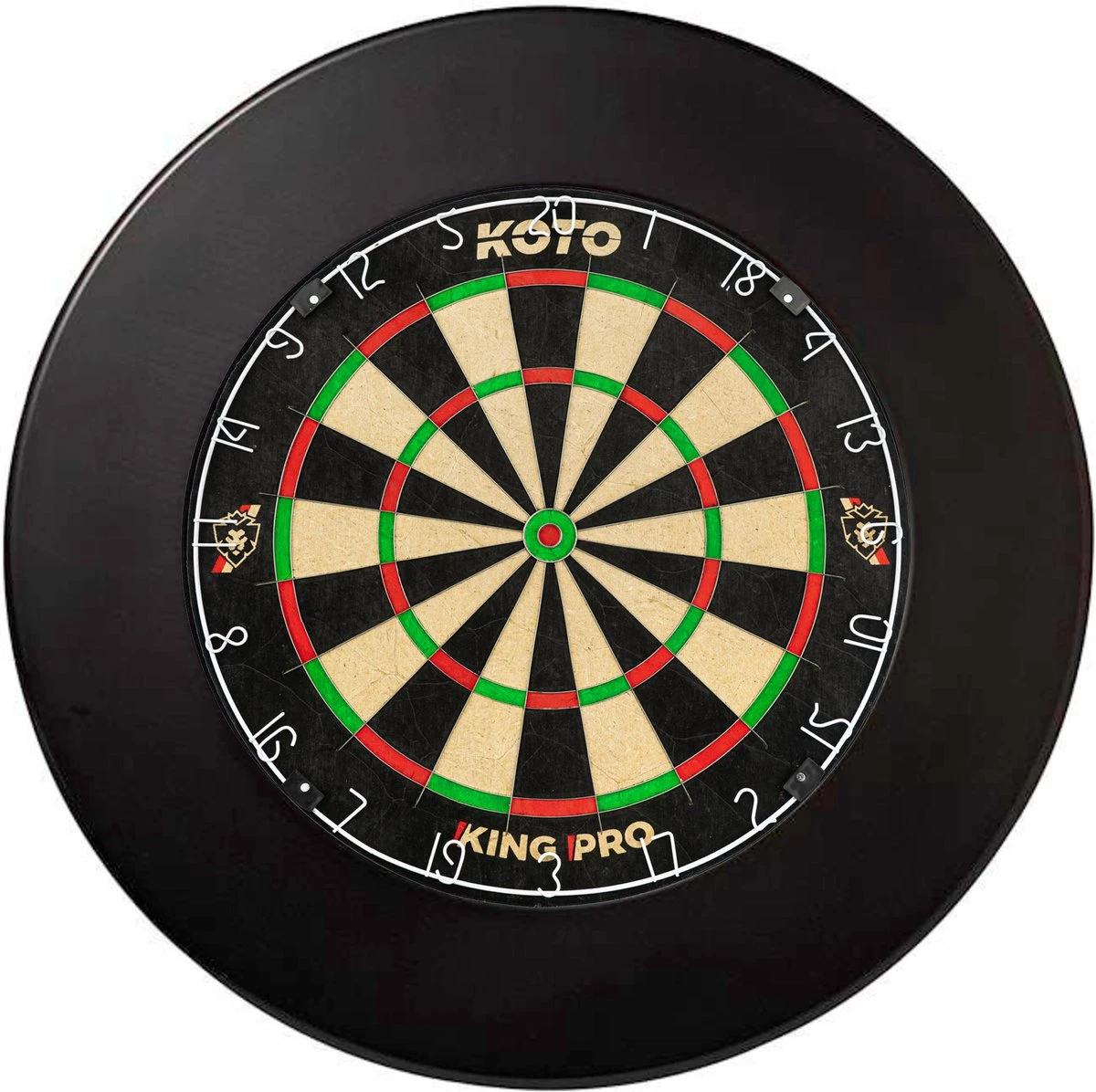 Hoogwaardige Surround: De professionele surround beschermt de muur en de dartpijlen tegen beschadigingen. De KOTO surround biedt 12 cm extra bescherming rondom het dartbord. De Surround is eenvoudig om het dartbord te klemmen. Hier heb je verder geen bevestigingsmaterialen voor nodig!