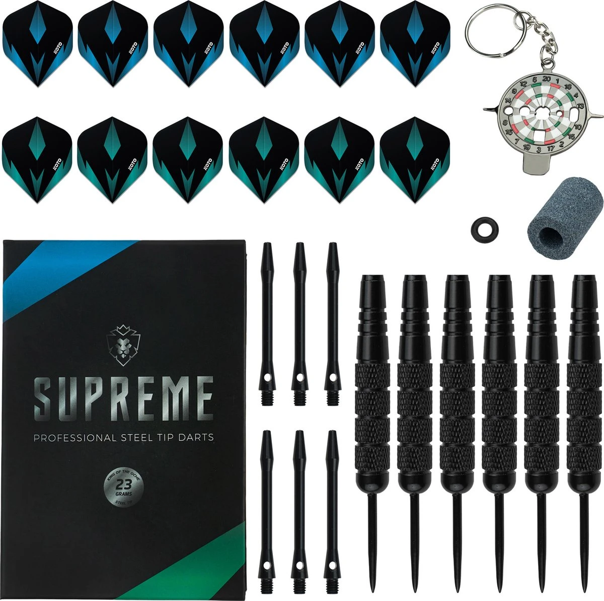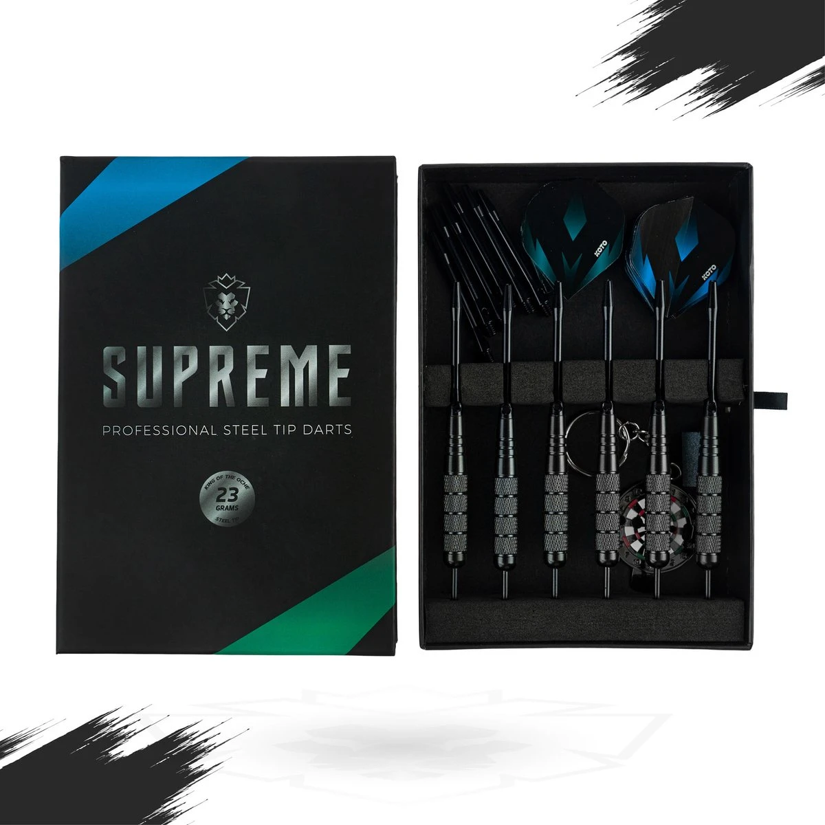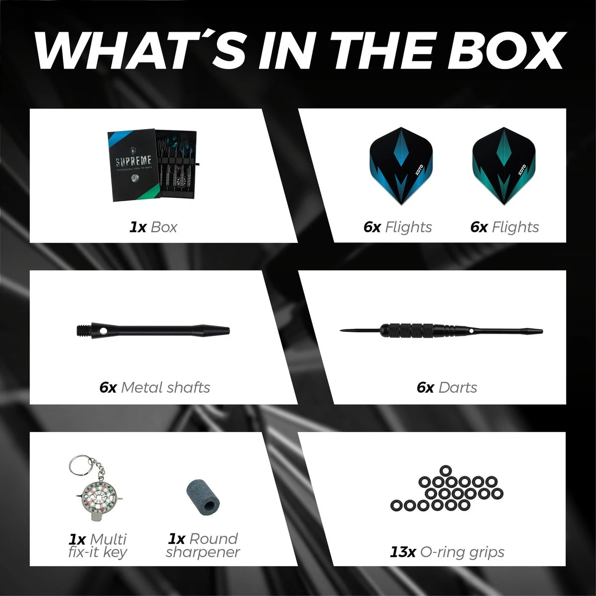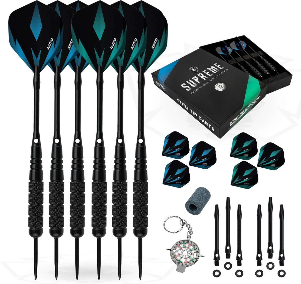 ✅ Complete set dartpijlen: De KOTO Supreme Brass Giftset – Dartpijlen – 23 Gram – Steeldarts – Brass Darts – Origineel Cadeau wordt geleverd als complete set. De set bestaat uit 6 barrels, vier sets KOTO flights met logo en twee sets KOTO shafts in de maat short en medium.
