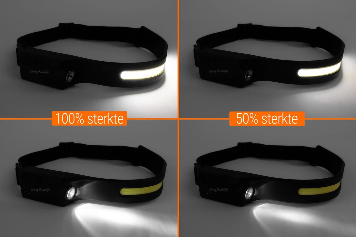 Deze LED hoofdlamp heeft naast de normale aan/uit knop maar ook een handige bewegingssensor. In deze stand kun je de lamp aan en uit zetten door je hand ervoor te bewegen.