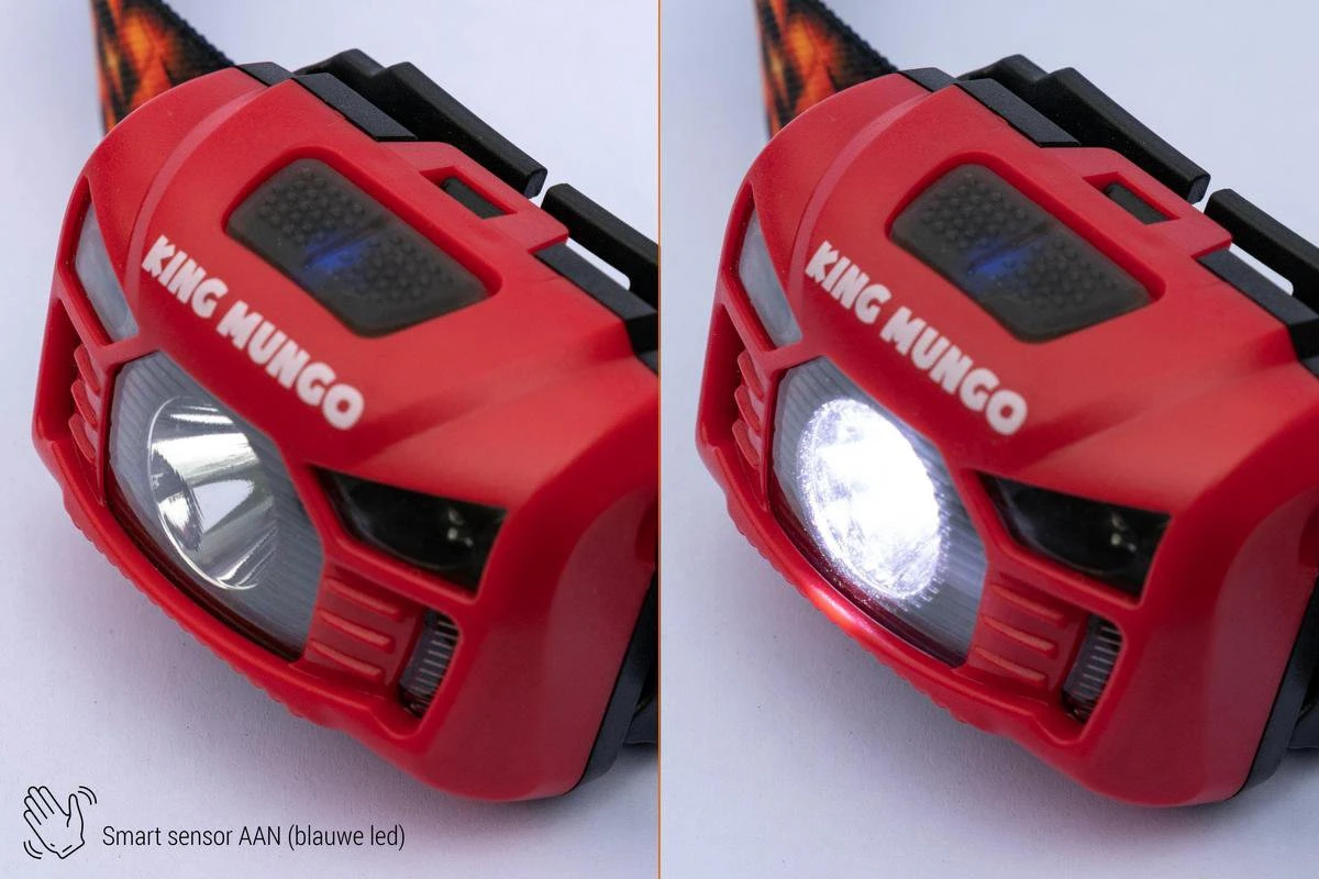 Deze LED hoofdlamp heeft naast de normale aan/uit knop maar ook een handige bewegingssensor. In deze stand kun je de lamp aan en uit zetten door je hand ervoor te bewegen.