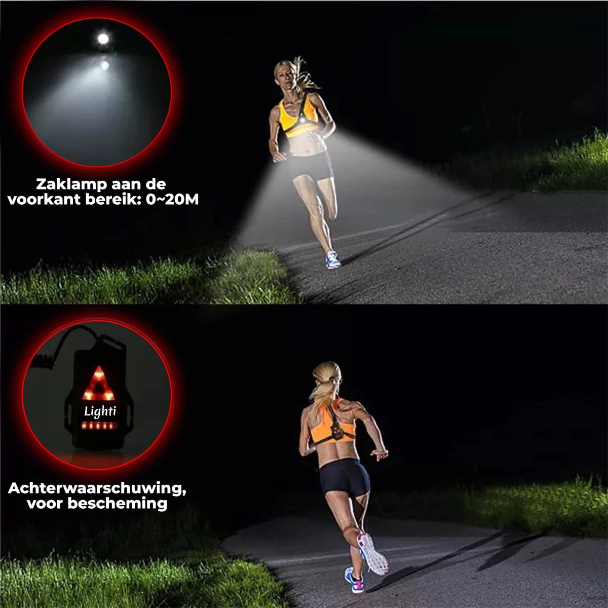 Wordt ook gezien in het donker met het superhandige hardloopvest van Lighti