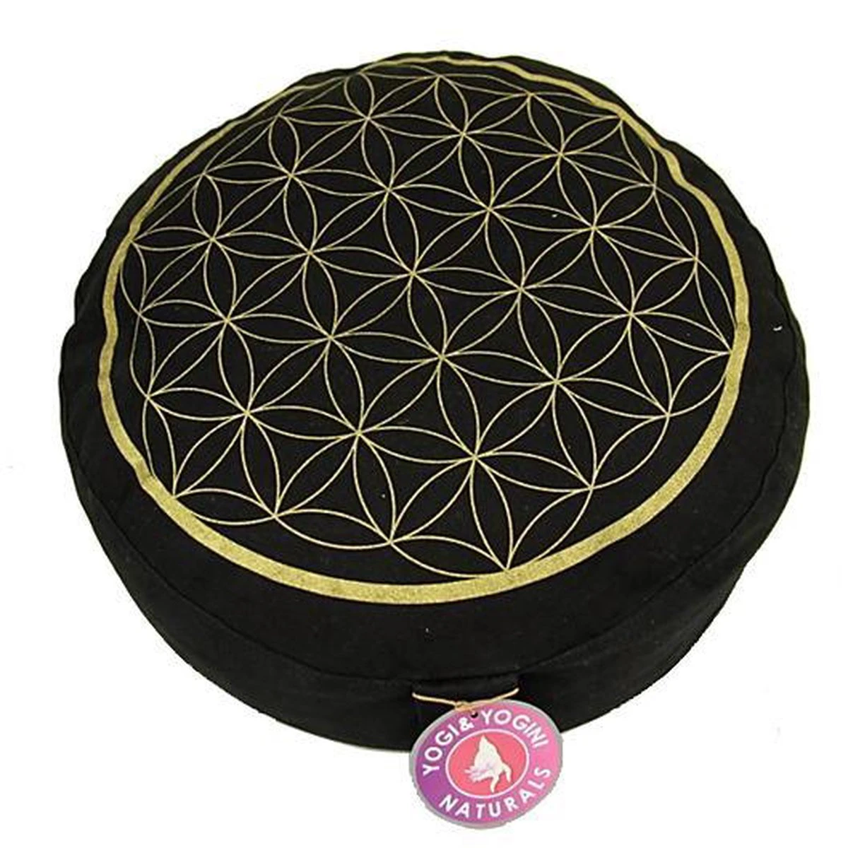 Meditatiekussen zwart met gouden levensbloem Afmetingen: 33×17 cm Kleur: zwart Materiaal hoezen: katoen Materiaal vulling: boekweit | Meditatiekussen – zwart met gouden levensbloem – fijnmazig netwerk in opdruk buitenkussen: katoen, met rits in de onderzijde binnenkussen: ongebleekt katoen, gesloten met een koord vulling: boekweitdoppen Uitgebreide beschrijving Yogi & Yogini kussens worden gevuld met 1e kwaliteit boekweitdoppen; de boekweitdoppen zijn gezeefd waardoor er geen stokjes in zitten. Kussens kunnen per bestelling lichte kleurverschillen vertonen omdat ze uit verschillende verfbaden komen. Navulbaar De boekweit in het meditatiekussen zakt na verloop van tijd wat in; voor het comfort dient het kussen te worden nagevuld. Je doet je klanten een groot plezier door altijd enige zakjes boekweit voorradig te hebben. De hoogte van het meditatiekussen kan worden aangepast door wat boekweit kaf eruit te halen. -Meditatiekussen zwart/goud levensbloem opdruk – Katoen – Boekweit – 33×17 – Zwart – Goud Afmetingen: 33×17 cm – Maat: L