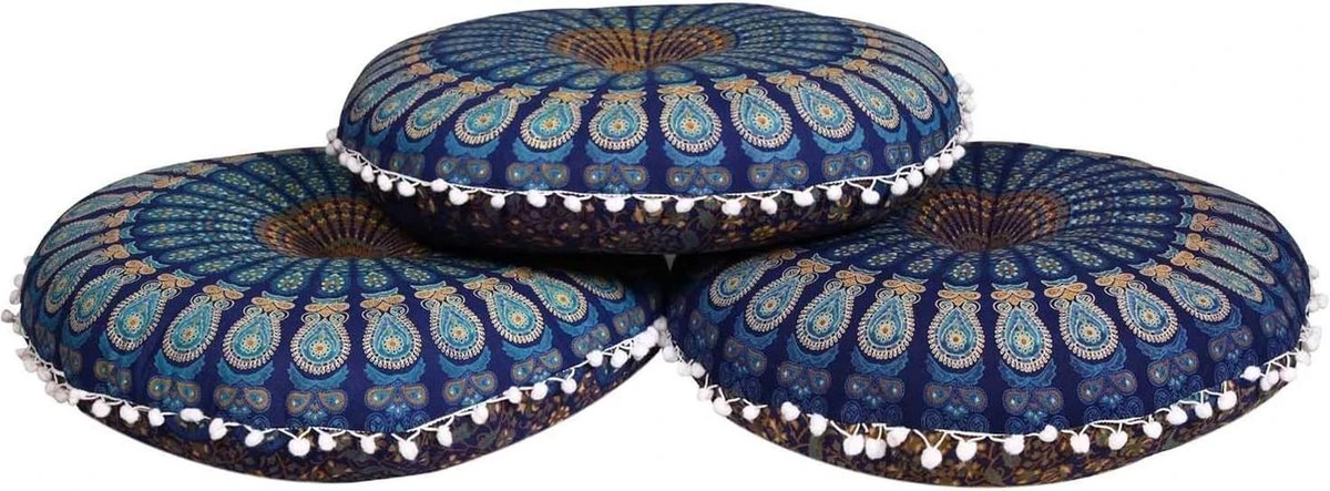 - Afmetingen: diameter ca. 55 cm x hoogte ca. 12 cm | Productie: traditioneel handwerk | De vulling bestaat uit gerecycled katoen | zonder ritssluiting | kleur: blauw