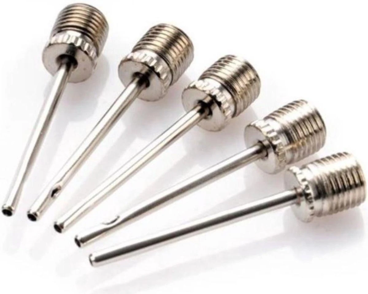 Met deze naalden set kunt u voetballen, volleyballen, basketballen enz. oppompen de set bestaat uit 5 naalden met een schroefdraad van 8mm en de diameter van de naald is 2mm.