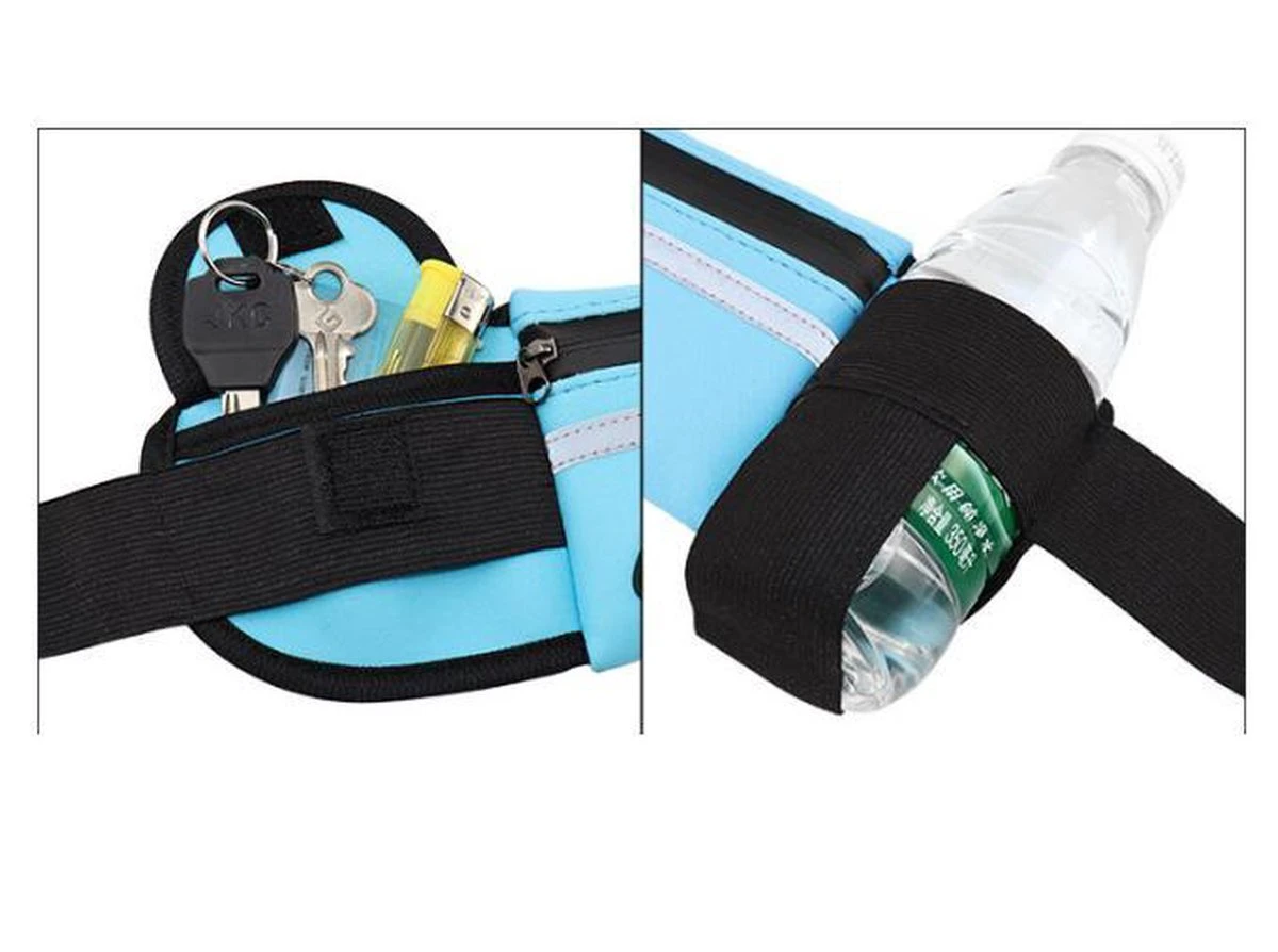 Deze verstelbare buideltas zit stevig in elkaar en is goed op maat te maken door de verstelbare elastieke band. Hierdoor wordt het stuiteren voorkomen van je spullen tijdens het hardlopen, wandelen, nordic walking, fietsen of iedere andere sport. Daarbij is het materiaal zacht en soepel, namelijk van neopreen.