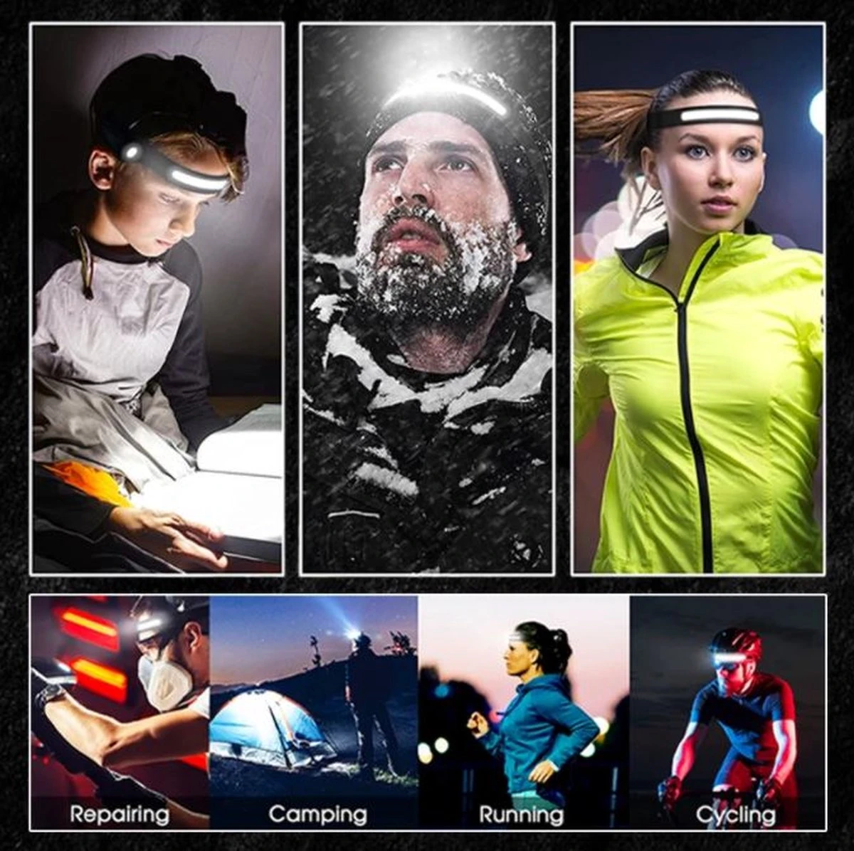 De Molisan LED Hoofdlamp is perfect geschikt voor allerlei verschillende activiteiten zoals hobbyen, constructiewerkzaamheden, thuis reparaties, hardlopen, fietsen, etc. Blijf gefocust op het werk, niet op de verlichting.