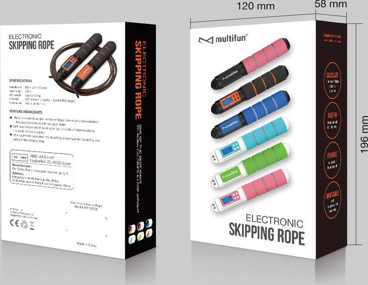 Het Digitale Springtouw van Multifun is hét springtouw waar je naar op zoek bent. Met een zelf-verstelbare lengte tot 2,8 meter is dit professionele springtouw zowel geschikt voor volwassenen, als voor kinderen. Op het digitale display kun je nauwlettend jouw “spring-resultaten” in de gaten houden (aantal sprongen, verbrande calorieën, tijd). Verder heeft deze speedrope zachte antislip-handvaten en draait deze zeer soepel door de stalen kogeldragers.