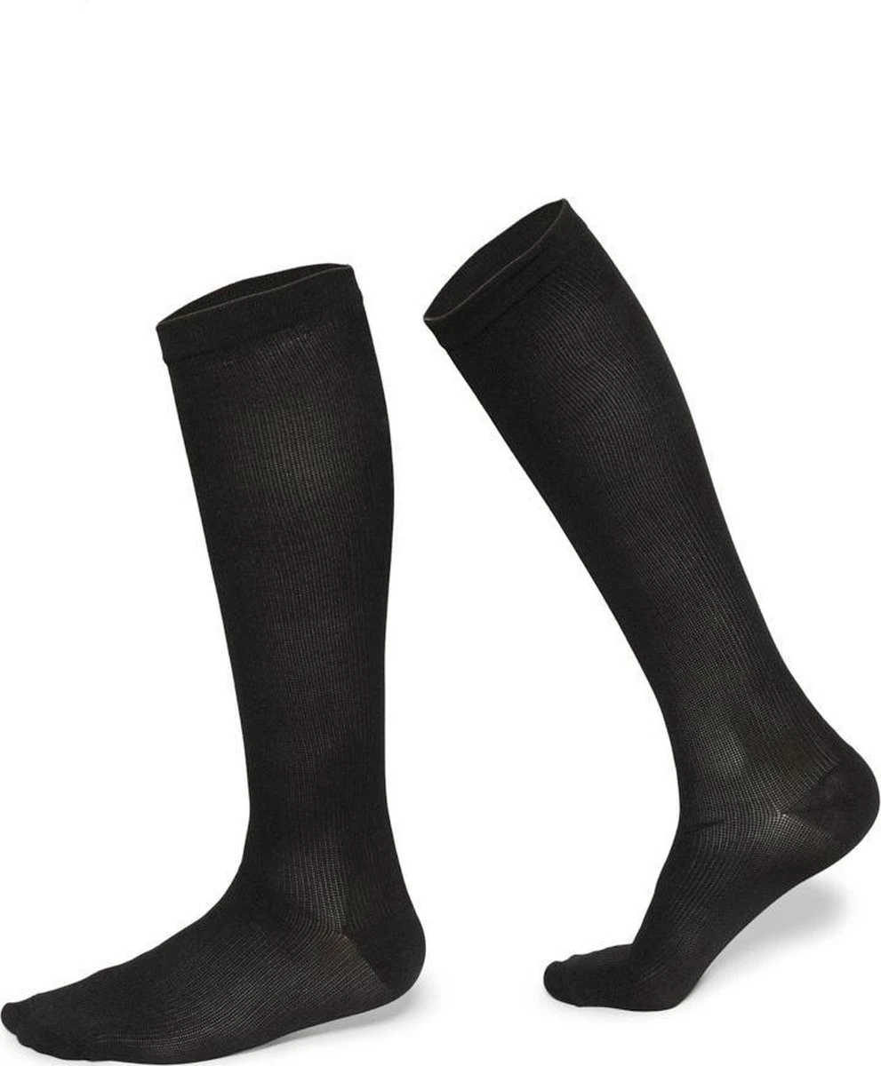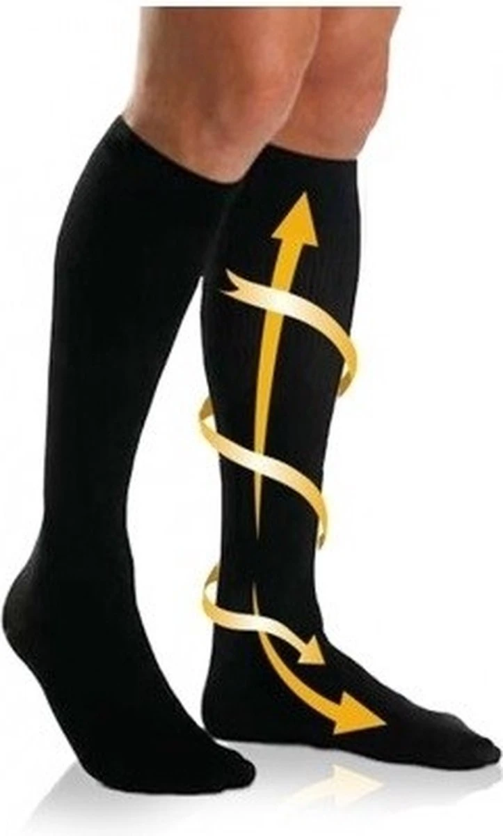 Deze therapeutische compressiesokken geven lichte druk op je voeten en enkels en zorgen er zo voor dat je bloedcirculatie verbetert. Zo voorkom je onder andere vervelende pijntjes, krampen, reisbenen, zwellingen en spataderen. Bovendien helpen ze afvalstoffen sneller te verwijderen en de prestaties van de benen verbeteren. De sokken worden niet voor niets veel gebruikt in de hardloopsport!