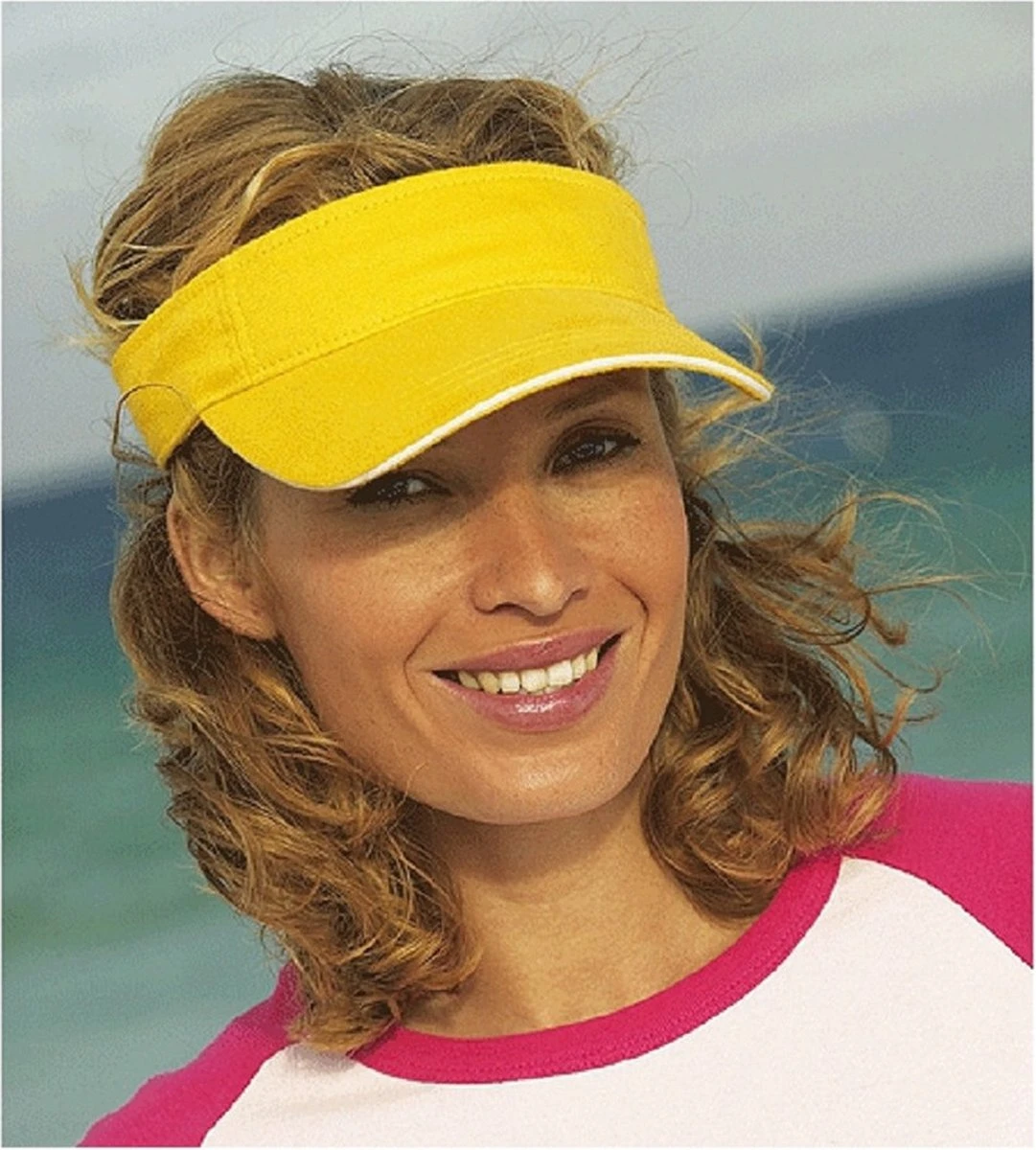 Zonnekleppen met contrast kleur aan de rand van de klep. De zonnekleppen zijn verstelbaar vanaf 47 cm doormiddel van een klittenband sluiting. Het materiaal is 100% katoen. Zonnekleppen/hoedjes zijn in vele kleuren verkrijgbaar.