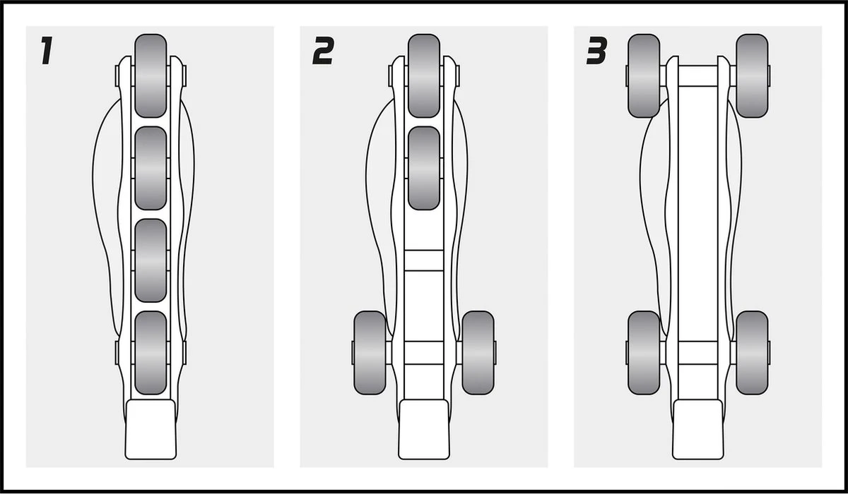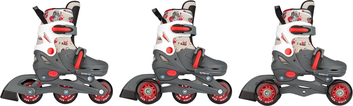- Bij maat 27-30 heeft de skate 3 wielen.