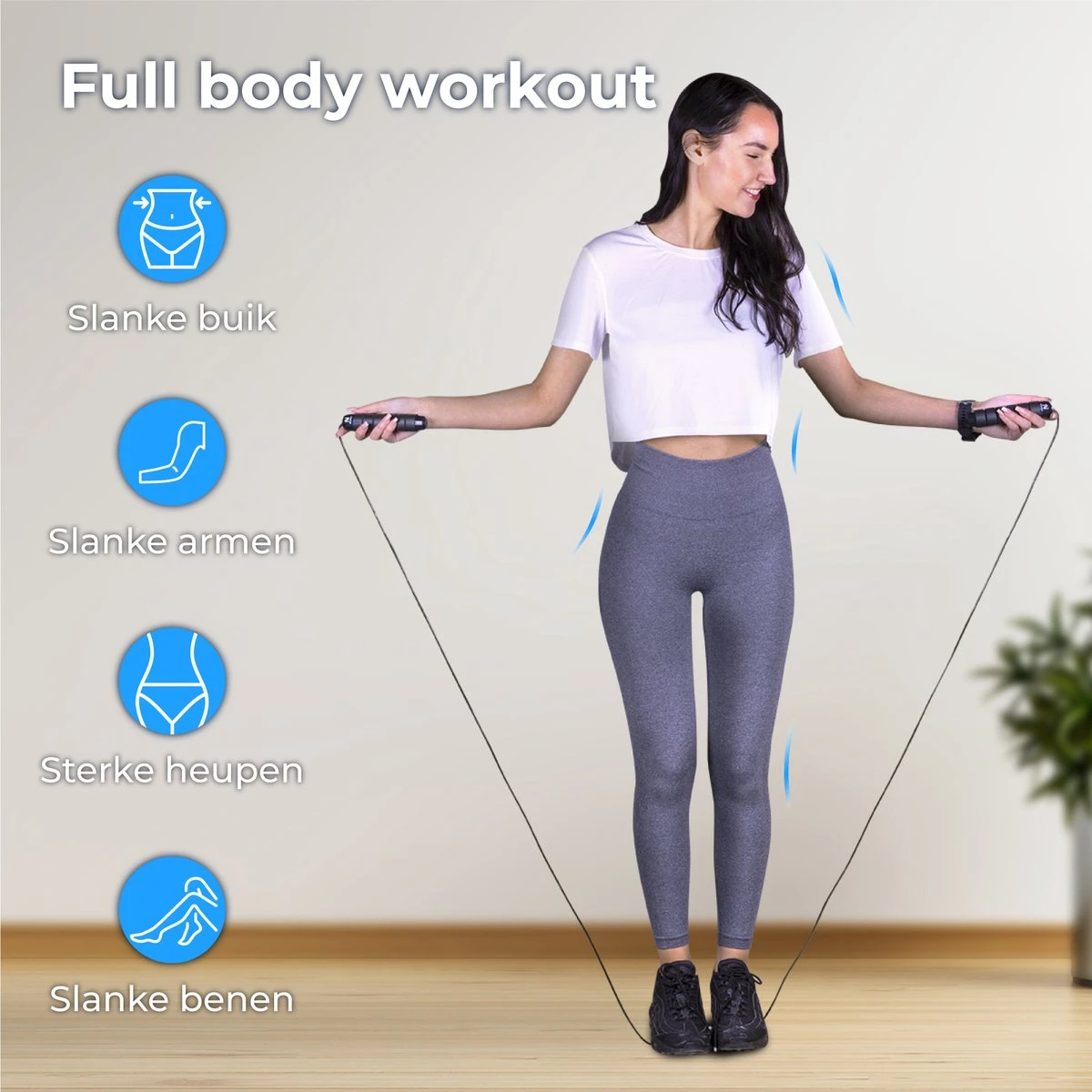 Bestel vandaag het verstelbare springtouw van Nuvance en verbeter uw gezondheid met behulp van de trainingen in het E-Book!