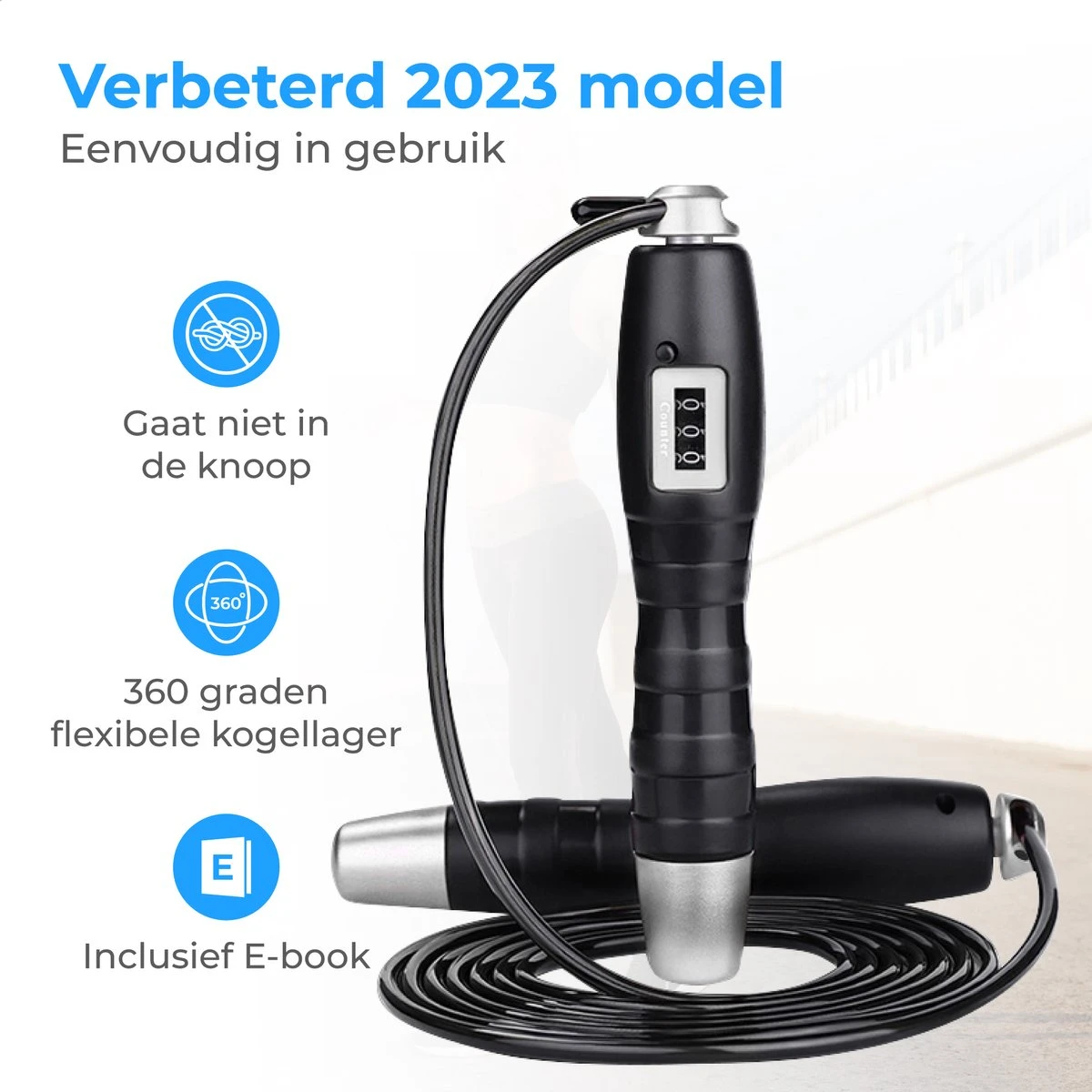 Het springtouw registreert elke beweging! In de praktische handvaten zit een schermpje die alle resultaten van jouw work-out op overzichtelijke wijze weergeeft. Via het scherm kun je zien hoeveel rondjes je gesprongen hebt. Hiermee kun jij proberen je dagelijkse records te verbreken!