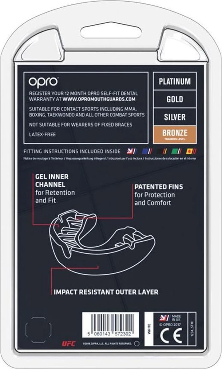 De UFC Gebitsbeschermer – Bronze – Volwassenen – Wit is een enkellaags bitje geschikt voor alledaagse trainingen. OPRO staat bekend om fenomenale gebitsbeschermers met tandverzekeringen.
