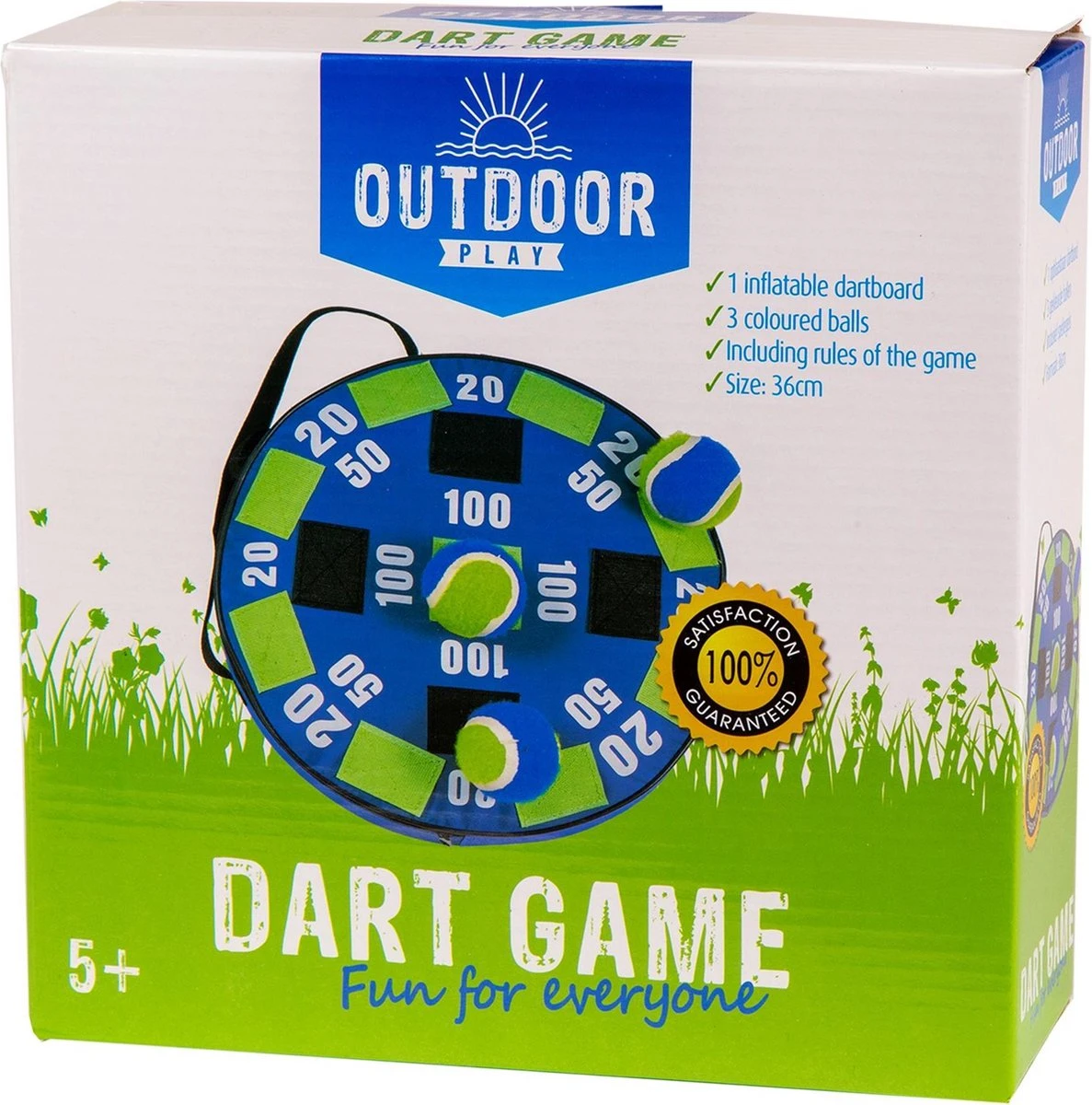 Outdoor play buiten darten Kijk of je de roos kunt raken en daag je familie of vrienden uit voor een vriendschappelijk spel in de buitenlucht met dit leuke dartspel van OUTDOOR PLAY! Het grote dartbord is opblaasbaar, waardoor het licht van gewicht en gemakkelijk mee te nemen is naar bijvoorbeeld het strand of de camping.