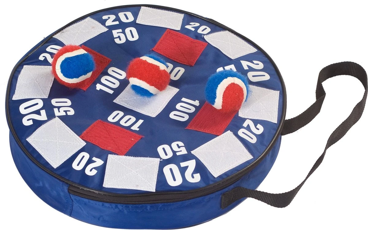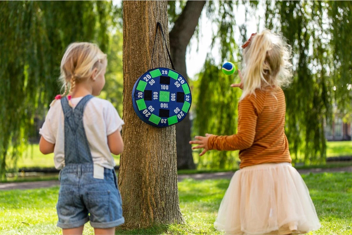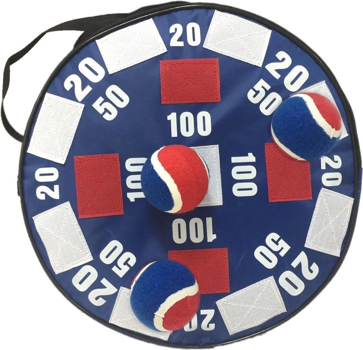 Kleur: blauw Materiaal: kunststof en textiel Diameter: 36 cm Opblaasbaar dartbord Inclusief drie ballen Eenvoudig te monteren WAARSCHUWING: Niet geschikt voor kinderen jonger dan 36 maanden.