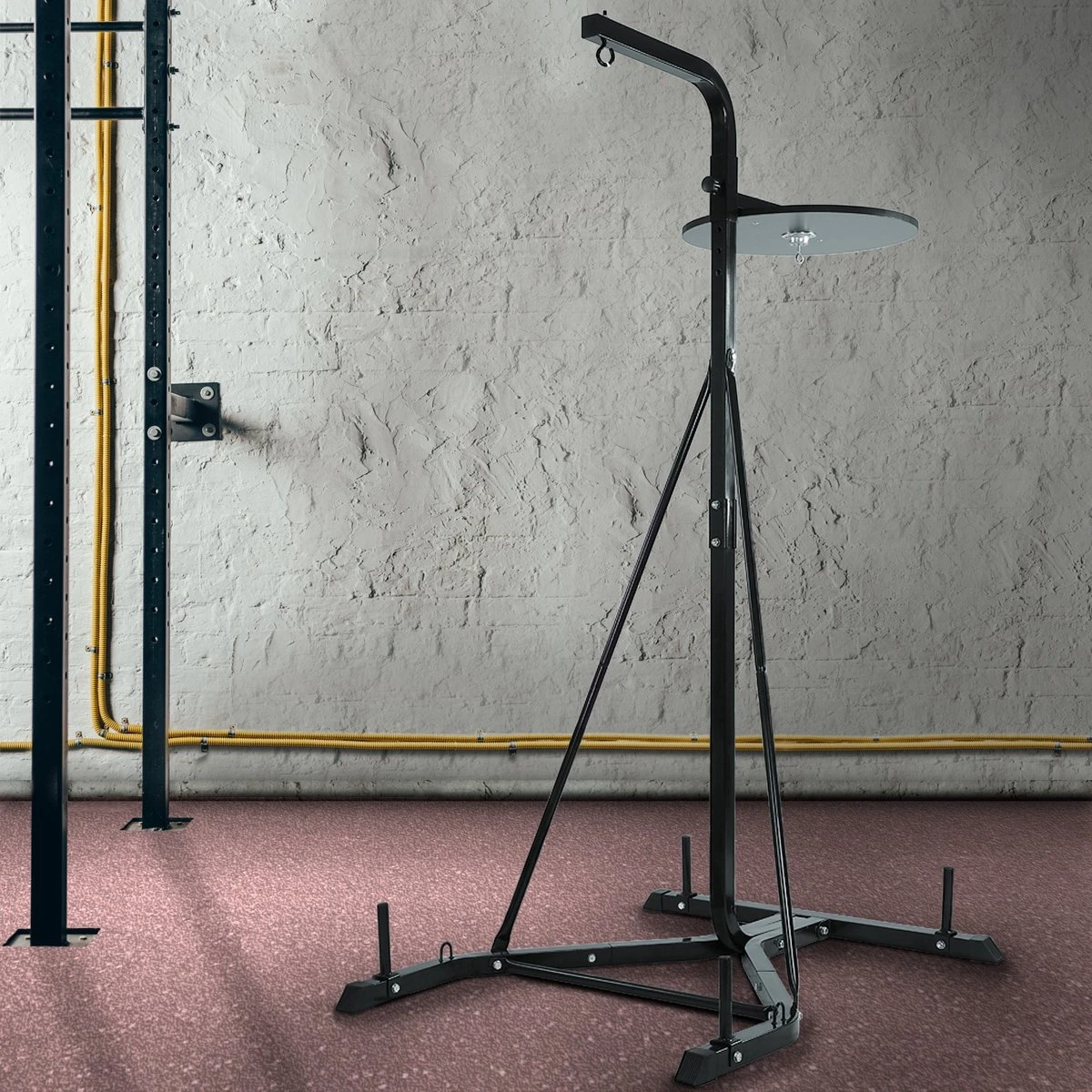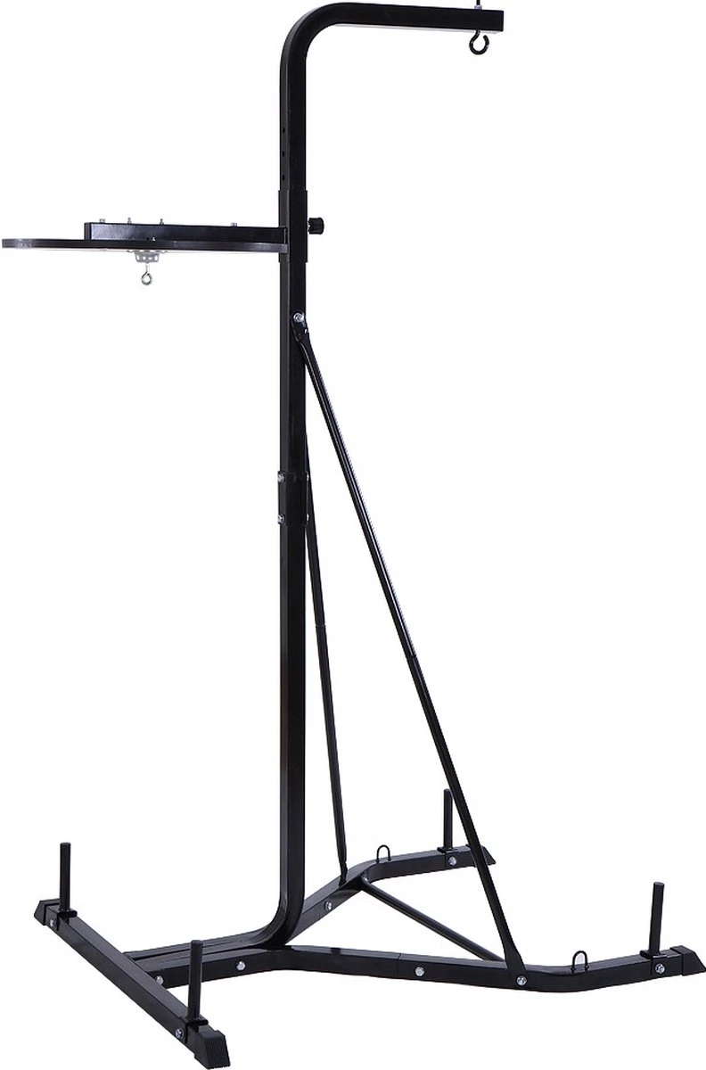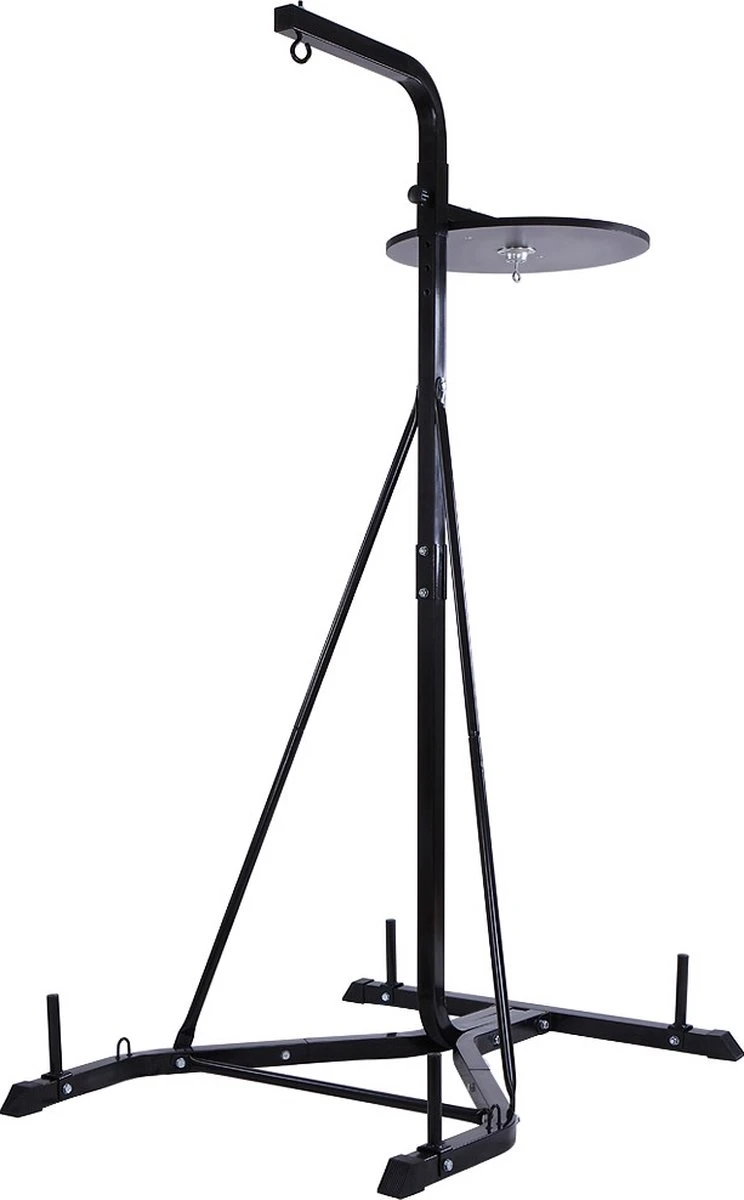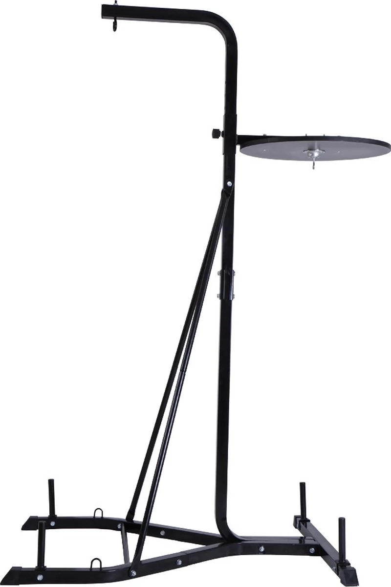 Deze standaard is geschikt voor een bokszak. Je kan de standaard in hoogt verstellen, zodat hij op de juiste hoogte hangt voor je training.