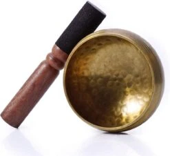 Tibetaanse Klankschaal Set | Meditatie Schaal Met Aanstrijkhout & Kussen | Singing Bowl | Klank Schaal | Yoga, Chakra | Oranje – 8 Cm