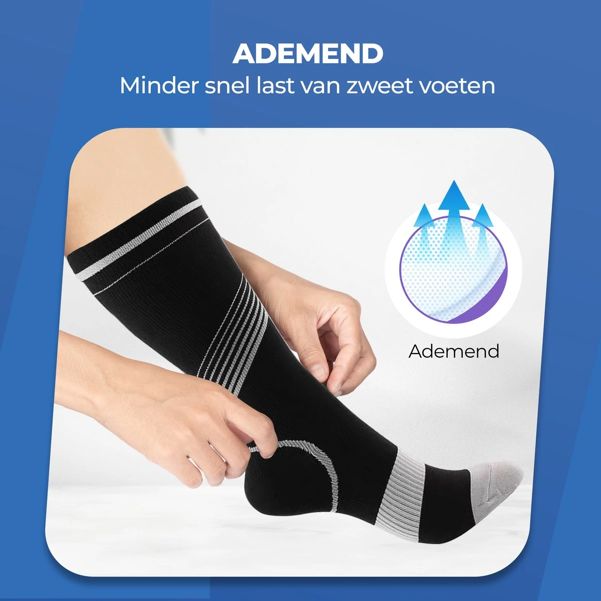 Ze verminderen opgezwollen benen en voeten: De compressie van de sokken kan helpen om het bloed beter te laten stromen, wat kan leiden tot minder opgezwollen benen en voeten.