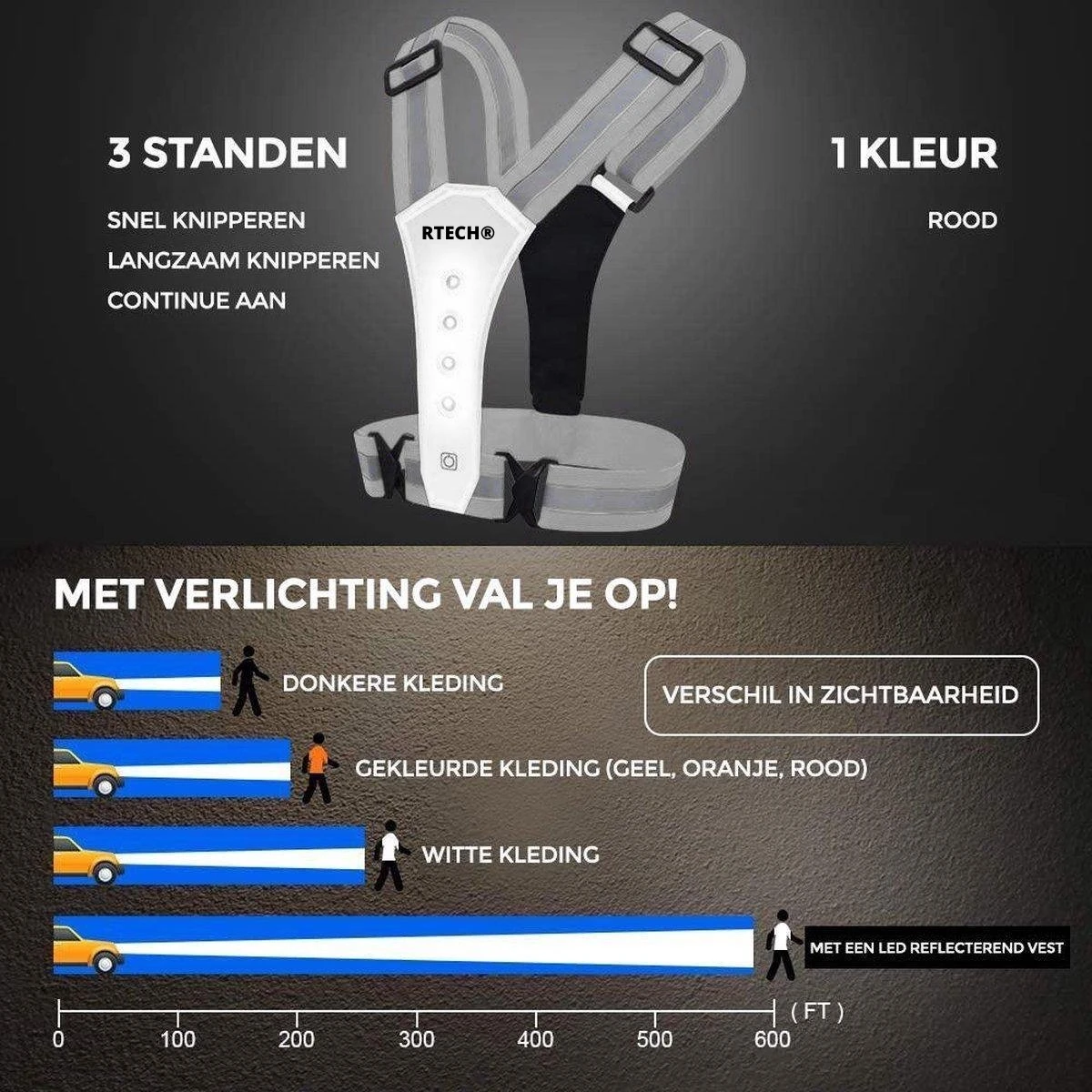 · Zichtbaarheid- Door gebruikt te maken van de hardloopverlichting van RTECH® zorg je ervoor dat goed zichtbaar bent voor andere weggebruikers. Verder is het uitgerust met verschillende