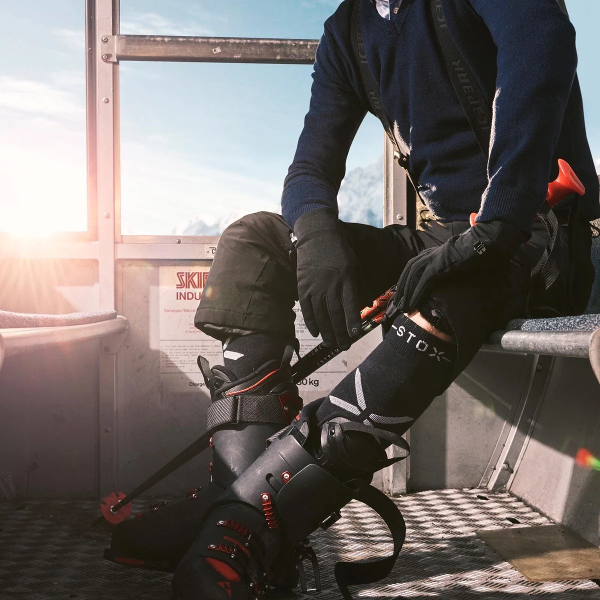WERKING: De skisokken bevatten compressie. Dit verbetert de bloedcirculatie in de benen. Hiermee voorkom je kramp, vermoeide benen of koude voeten.