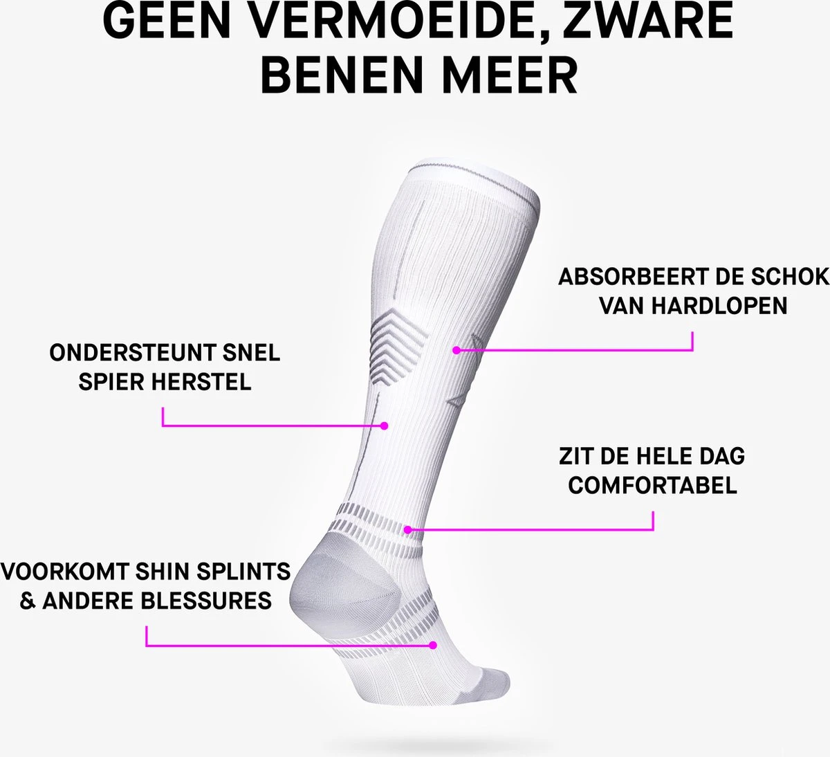 WERKING: STOX Energy Socks bevatten compressie. Dit verbetert de bloedcirculatie in de benen. Hiermee verklein je de kans op spierpijn en blessures. De sokken stabiliseren en ondersteunen je enkels, schenen en kuitspieren optimaal.